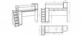 Кровать-чердак с рабочей зоной Мираж 2 BMS