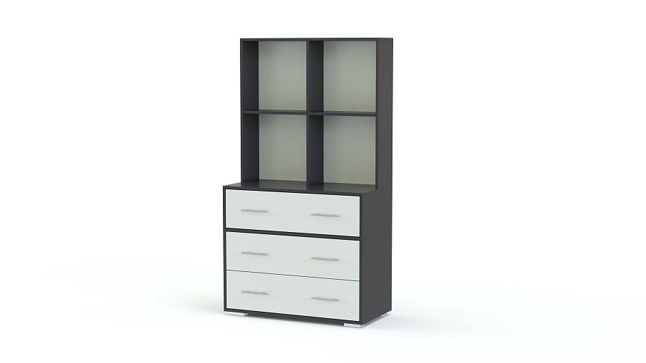 Вместительная модель Бемби К-6 BMS удачно впишется интерьер подростковой комнаты. Комод с четырьмя выдвижными ящиками – двумя большими и двумя малыми дополнен надстройкой-стеллажом с просторными открытыми полками. Практичная конструкция позволит разместить многочисленные игрушки, книги и предметы гардероба ребенка. Нейтральные фасады с металлическими ручками-рейлингами отлично смотрятся, износостойки и могут быть выполнены в нескольких оттенках на выбор.