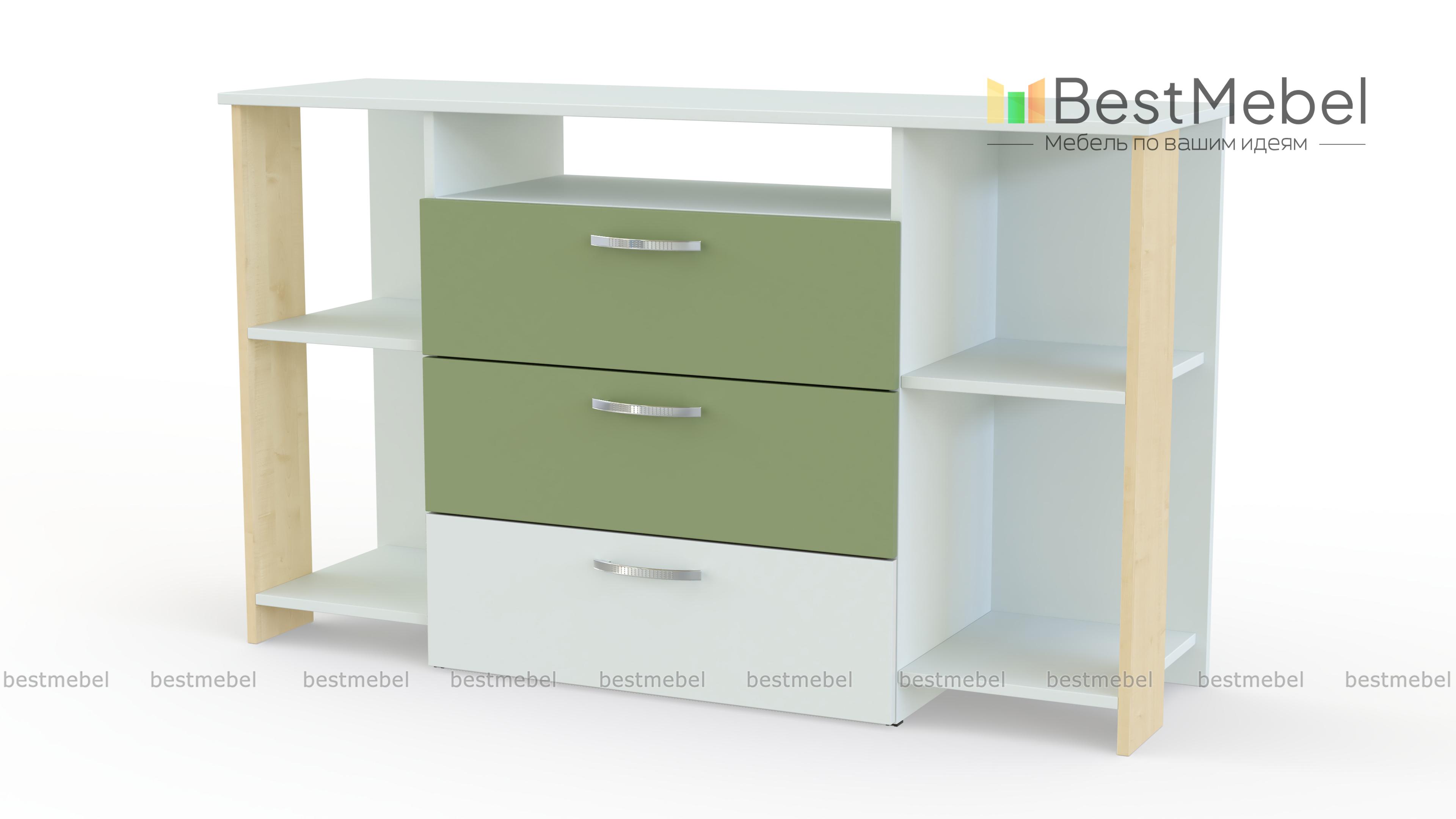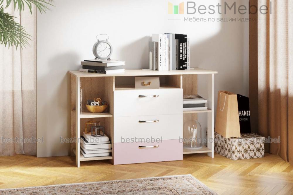 Комод Дабл 3 BMS дополнит интерьер современной спальни или гостиной и поможет разместить большое количество вещей, а также оформить зону ТВ. Комбинированная модель оборудована широкой столешницей, тремя выдвижными ящиками, нишей под аппаратуру и открытыми боковыми секциями для книг или декоративных мелочей. Корпус светлого древесного оттенка дополняет фасад в белом и графитовом цвете. Купить комод Дабл 3 BMS по доступной цене вы сможете в нашем интернет-магазине.