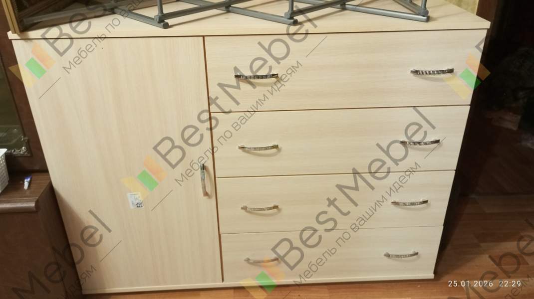 Комод отличный. Всё ровненько сделано, все комплектующие есть. Доставка вовремя. Рекомендую.