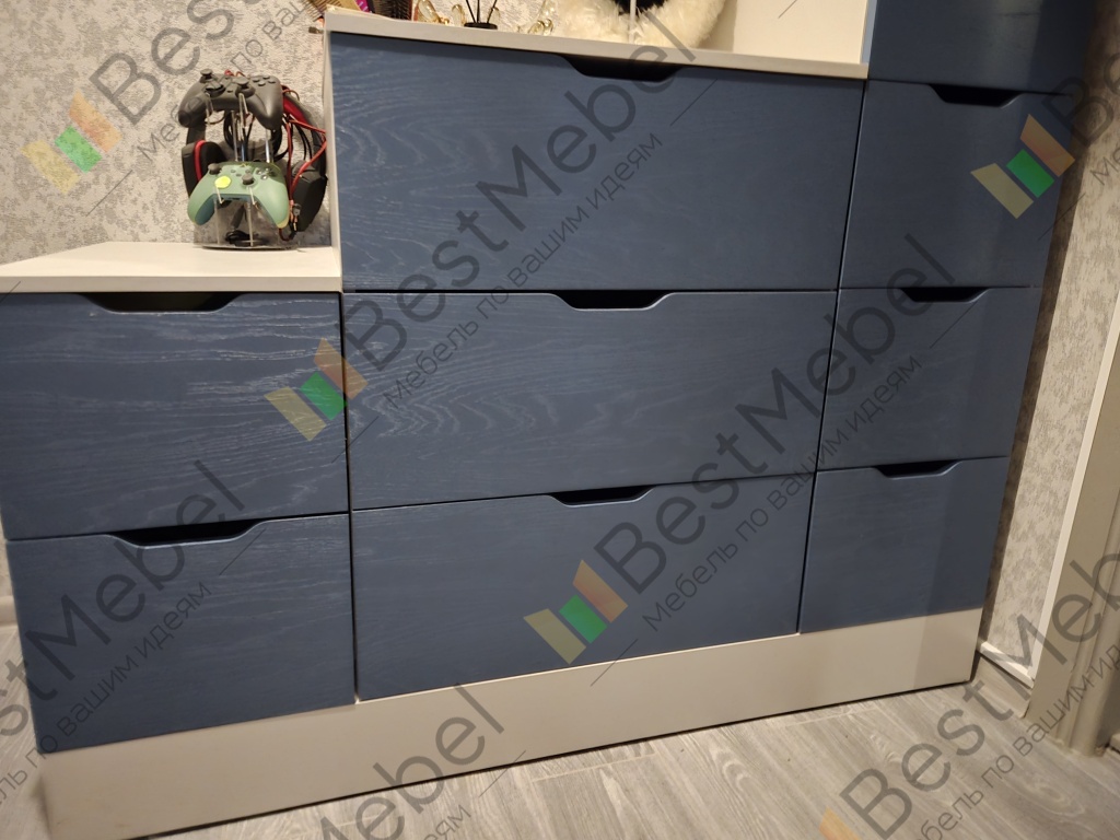 Комод Нордли Nordli 20 представляет собой композицию из трех расположенных «лесенкой» модулей. Удобная система хранения включает в себя девять выдвижных ящиков разных размеров, в которых поместятся одежда, постельное белье и всевозможные бытовые вещи. Верхняя часть лаконичного комода в духе сканди станет идеальной подставкой для стильного декора, уходовых средств или книг. Купить комод Нордли Nordli 20 в спальню, гостиную или прихожую вы сможете в нашем интернет-магазине. Выбирайте мебель в стиле IKEA (ИКЕА) от производителя BestMebelShop!