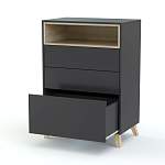 Комод Пенелопа 1 BMS с минималистичным оформлением подойдет большинству современных интерьеров. Компактный и вместительный, комод оборудован нишей, двумя малыми выдвижными ящиками для мелких вещей и одним большим, предназначенным для хранения объемных постельных принадлежностей, одежды или игрушек. Оттенок высоких скошенных ножек гармонирует с древесной вставкой в нише. Купить комод Пенелопа 1 BMS, изготовленный по вашим размерам, приглашаем на сайт нашего интернет-магазина.