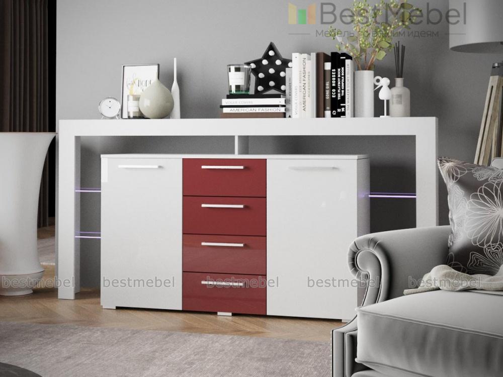 Футуристичный дизайн комода Riva II plus BMS станет идеальным дополнением современных интерьеров в стиле хай-тэк и минимализм. Четыре выдвижных ящика в центре располагаются по соседству с вместительными распашными отделениями и необычными, полностью открытыми стеклянными полками. Матовые фасады выполнены в контрастных цветах, фурнитура удобная и лаконичная, а светодиодное освещение придаст атмосферности не только предметам декора, но и гостиной в целом. Расцветку корпуса и фасадов вы сможете подобрать в нашем интернет-магазине.