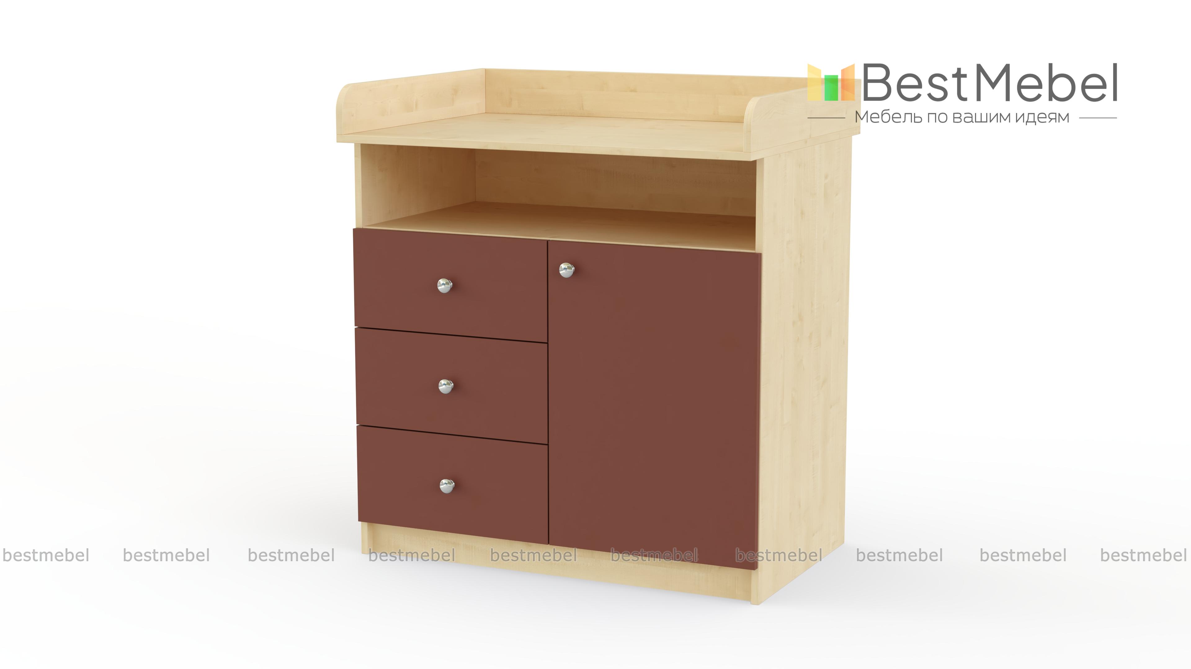 Пеленальный комод Гера 4 BMS отлично вписывается в современные детские благодаря простому функциональному дизайну и широкому выбору цветовых решений. Выполненная из ламинированной плиты высокого качества, модель оборудована просторной нишей, тремя выдвижными ящиками и распашным отделением с полками для хранения детских вещей. Просторную пеленальную поверхность с трех сторон закрывают скругленные защитные бортики. Купить пеленальный комод Гера 4 BMS по доступной цене вы сможете в нашем интернет-магазине.