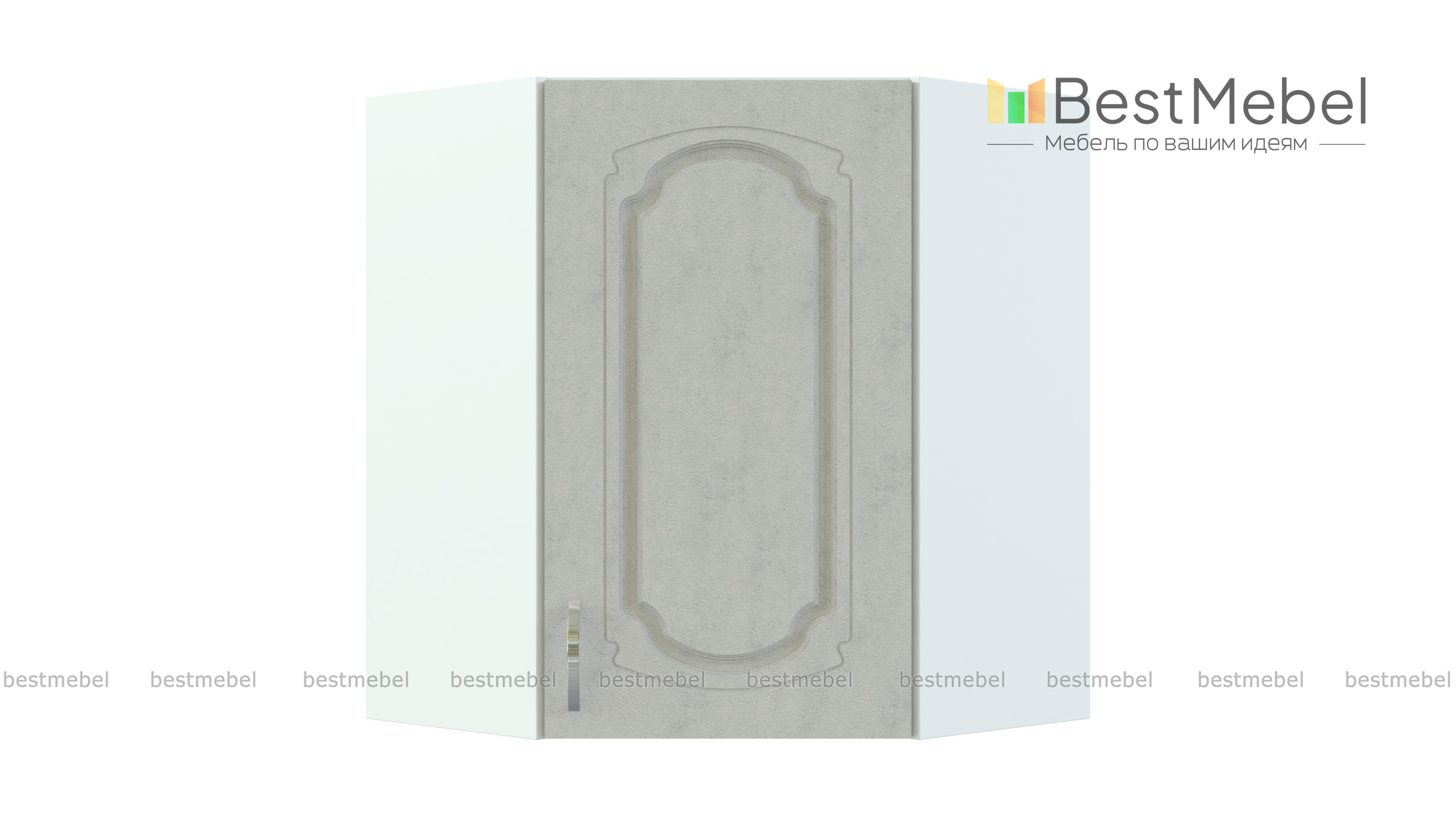 Шкаф верхний угловой Настя BMS займет центральное место в композиции из навесных модулей кухонного комплекта. Шкаф выполнен в характерных для классического стиля теплых тонах и украшен по фасаду элегантной фрезеровкой. Внутреннее отделение с полкой отличается особенной вместительностью и подходит для хранения сыпучих продуктов, специй, посуды и многого другого. Купить шкаф верхний угловой Настя BMS простой и надежной распашной конструкции вы сможете недорого в нашем интернет-магазине.