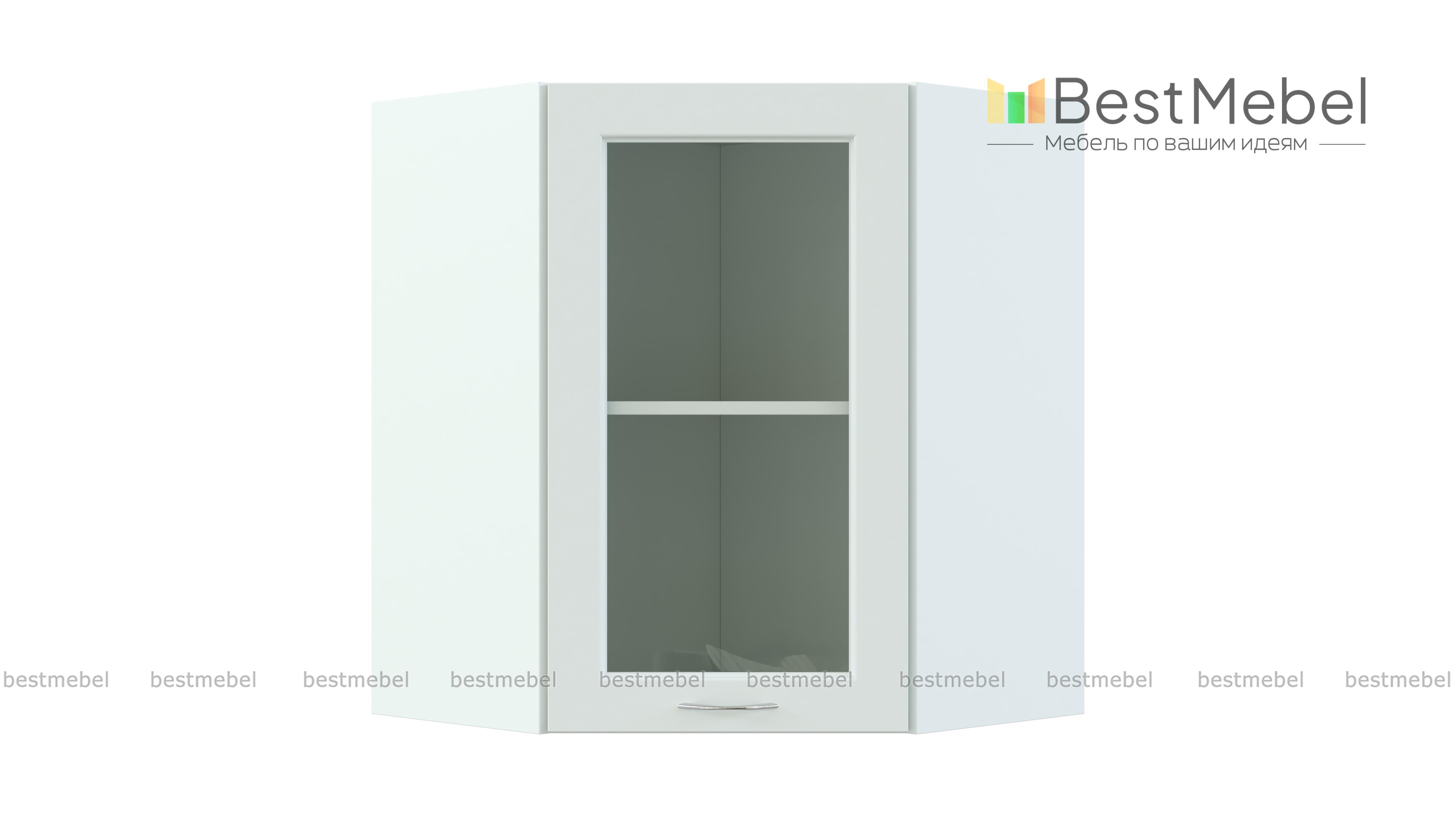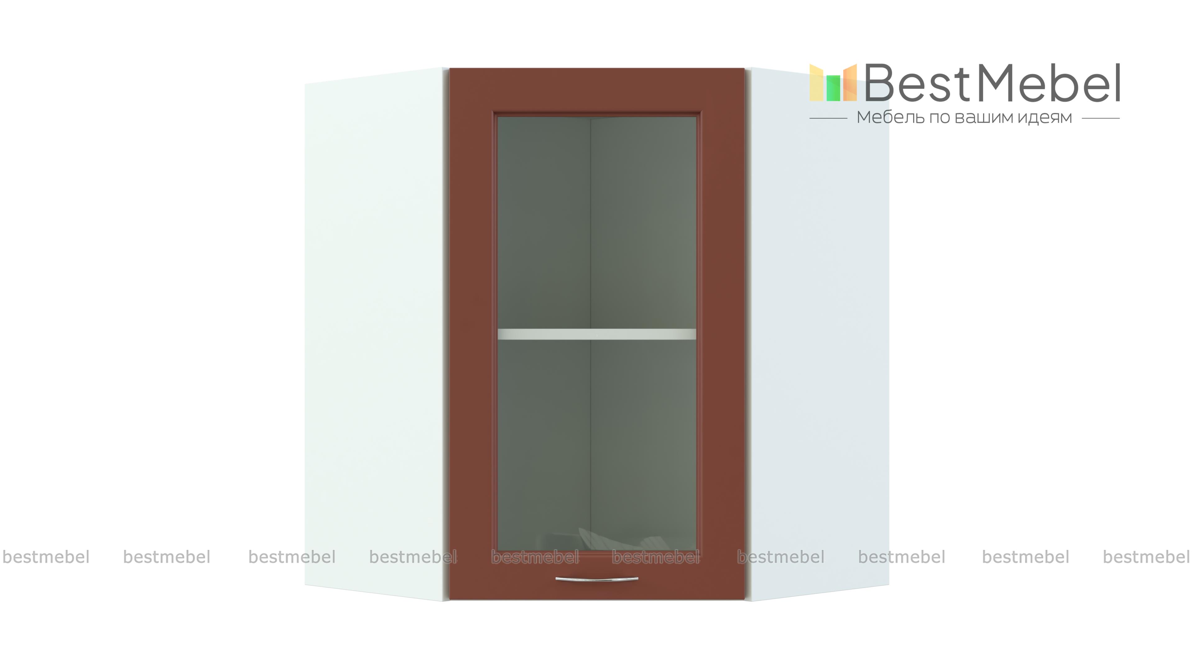 Шкаф верхний высокий Гарда угловой стекло 550 BMS – это элегантная витрина в форме трапеции, которая поможет эффективно использовать пространство и сделает домашний интерьер уютнее. Модель служит для стыковки прямых шкафов левого и правого крыла и незаменима в угловом кухонном гарнитуре. За распашной застекленной дверцей располагается просторное внутреннее отделение с полкой, оптимальное для красивой посуды, специй, чая и кофе. Купить шкаф верхний высокий Гарда угловой стекло 550 BMS для современной кухни приглашаем в наш интернет-магазин.
