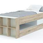 Кровать детская Снуп BMS – многофункциональная модель для интерьера детских и молодежных комнат. Практичная конструкция представляет собой комбинацию комфортного спального места, высокого основания с выдвижными ящиками, нишей и торцевыми открытыми полками и спинки изголовья в виде мини-стеллажа. Объединившая зону отдыха и удобную систему хранения, кровать позволит разместить постельное белье, игрушки, книги, принадлежности для школы и творчества и множество мелочей. В оформлении использованы светлые древесные тона и белые вставки. Купить кровать детскую Снуп BMS приглашаем в наш интернет-магазин.