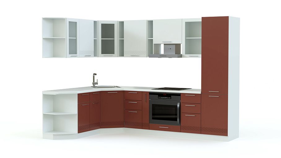 Кухня Капля угловая BMS – вместительный угловой комплект, который выгодно использует возможности просторного помещения и позволит разместить все необходимое, от посуды и бытовой техники до продуктов. Модель оборудована не только стандартными тумбами и навесными шкафчиками, но и высоким пеналом, торцевыми элементами и открытыми полками. Матовые фасады устойчивы к повреждениям и просты в уходе. Купить кухню Капля угловая BMS по отличной цене вы сможете в нашем интернет-магазине.