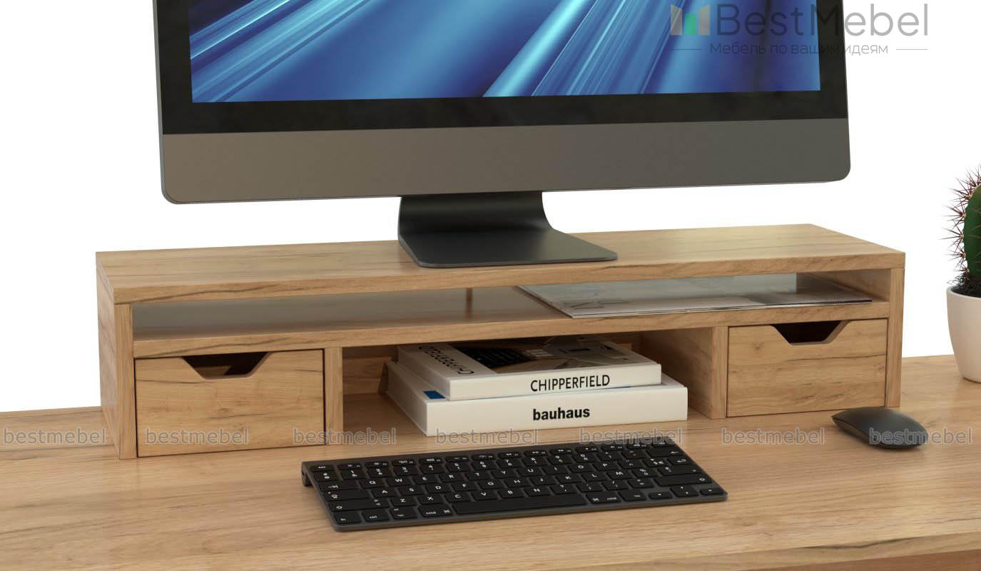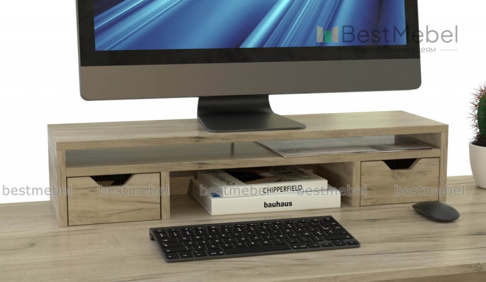 Подставка под монитор Мокко-5 BMS устанавливается на столешницу и помогает не только удобно разместить монитор, но и освободить рабочую поверхность от лишних предметов. Подставка оборудована двумя нишами разных размеров и двумя выдвижными ящиками с вырезными ручками для удобного хранения мелочей. Оптимальная высота просмотра снизит нагрузку на глаза и спину пользователя. Купить подставку под монитор Мокко-5 BMS вы сможете в нашем интернет-магазине с выбором цвета по каталогу.