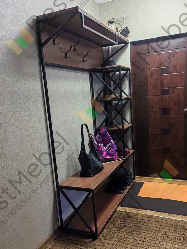 Прихожая Перу 13 BMS поможет создать интерьер в современном стиле лофт или хай-тек за счет оригинального дизайнерского решения, вобравшего в себя сочетание приглушенных древесных тонов и контрастного металлокаркаса, который придает конструкции дополнительную устойчивость. Модель укомплектована обувной полкой, тремя открытыми полками, на которых можно хранить предметы первой необходимости, и крючками, позволяющими с комфортом разместить верхнюю одежду. Купить прихожую Перу 13 BMS, подобрав подходящее цветовое решение и оптимальные размеры, вы можете в нашем интернет-магазине.