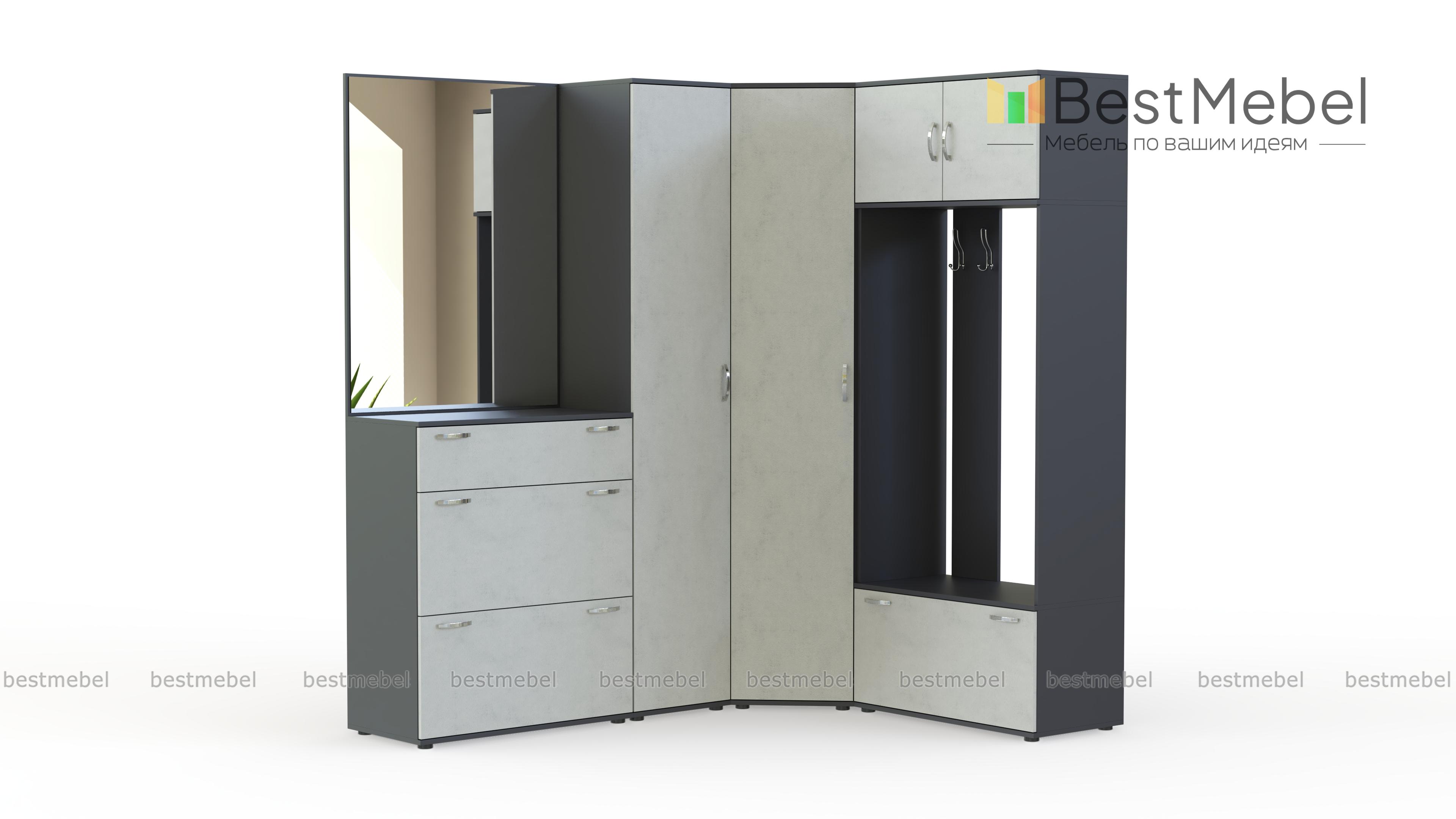 Прихожая Севара 16 BMS с матовыми фасадами гармонично дополнит современные интерьеры. Эффектная и функциональная, модель экономит полезную площадь за счет угловой конструкции и включает в себя все необходимое для размещения одежды, обуви и аксессуаров. В комплекте угловой и прямой шкафы, секция с зеркалом и тумбой и открытая вешалка с антресолью и обувницей. Гарантией долговечности и эстетичного вида станут износостойкие материалы. Купить прихожую Севара 16 BMS по выгодной цене приглашаем в наш интернет-магазин.