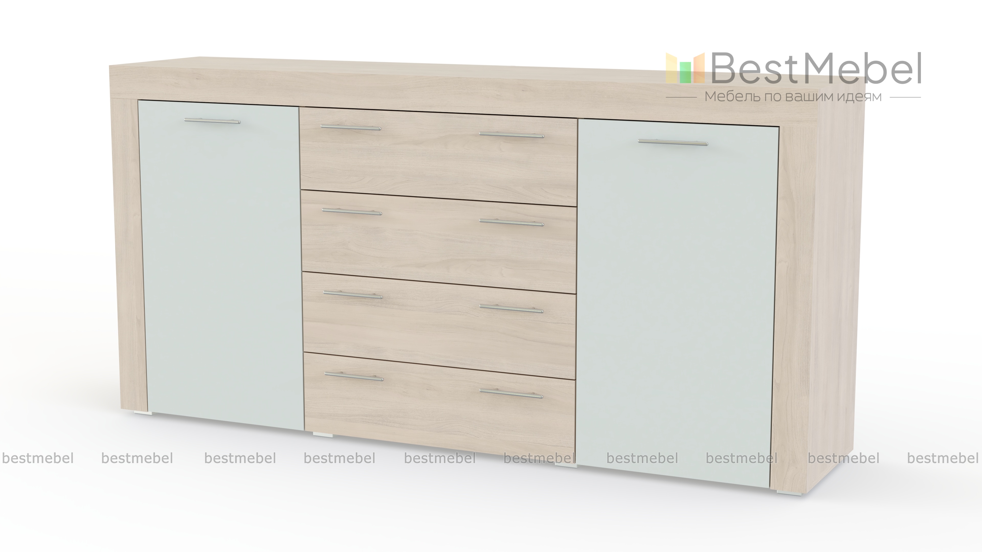 Современный и уютный комод Астера-7 понравится тем, кто ценит стильный дизайн и функциональность. Представленная модель прекрасно впишется в Вашу спальню или гостиную, не заняв при этом много места. Несколько выдвижных ящиков в центральной части комода позволяют компактно сложить постельные принадлежности и нательное белье. Боковые отделения с полками без труда вместят необходимые Вам мелкие предметы быта. На столешницу можно поставить сувениры или фотографии. Купить эту модель Вы можете у нас.