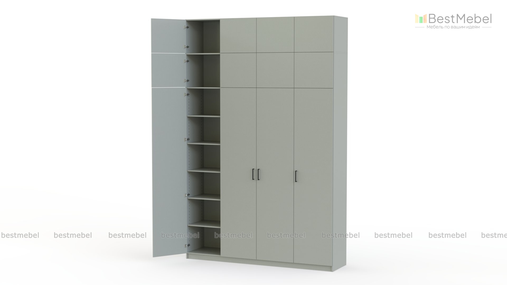 Шкаф распашной Остин Уно 8 BMS удобен как для хранения одежды, так и разнообразных бытовых вещей, габаритных постельных принадлежностей. Платяное отделение в центре дополняют боковые секции с регулируемыми полками, а в верхней части расположились два ряда антресолей. Минималистичное оформление позволяет легко комбинировать шкаф с другой мебелью в интерьере спальни или прихожей. Купить шкаф распашной Остин Уно 8 BMS вы сможете в нашем интернет-магазине от производителя BestMebelShop!