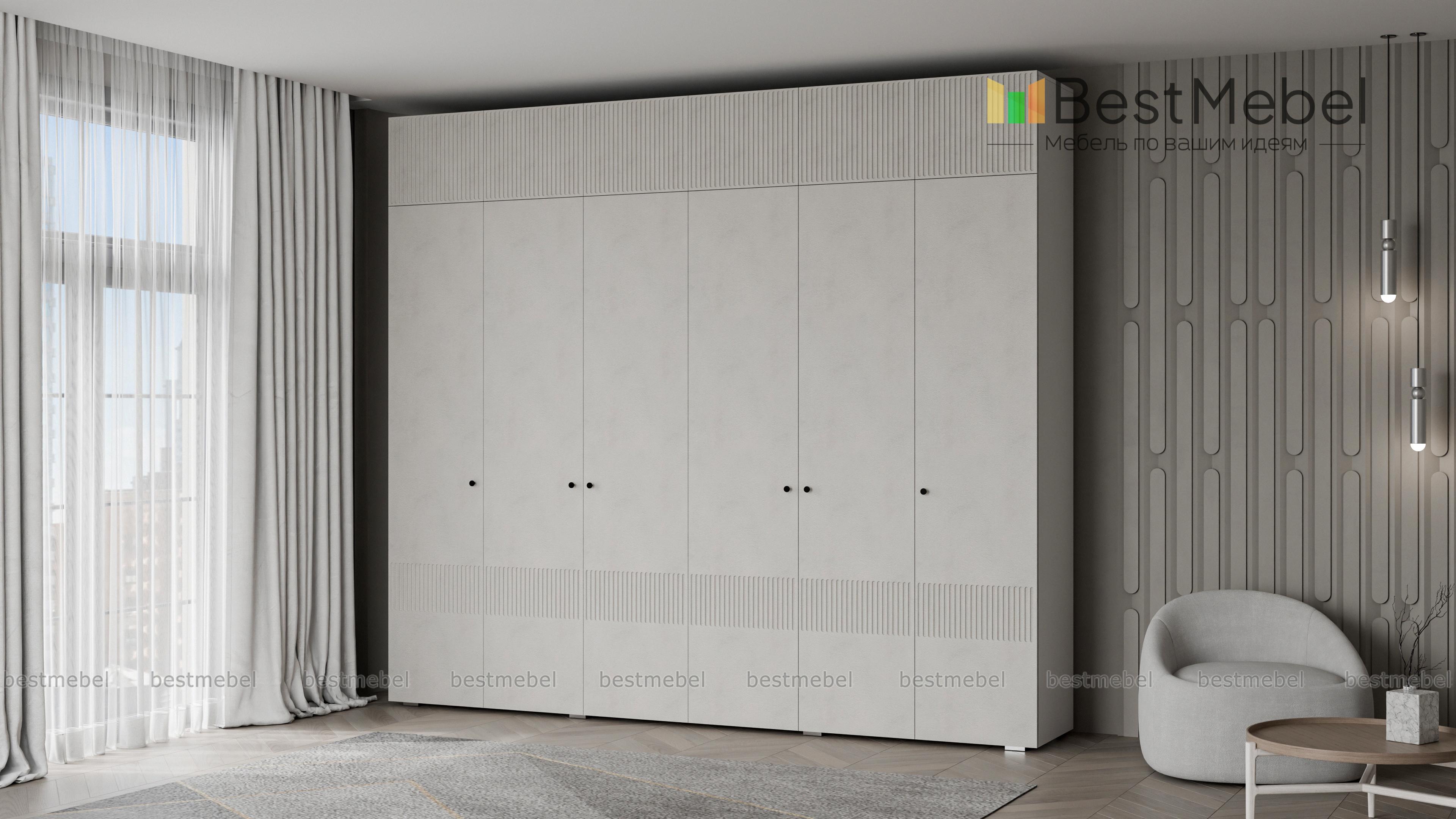 Шкаф распашной Джосс 12 BMS сохранит в порядке гардероб семьи. Шестидверная конструкция с двумя платяными отделениями, расположенными в центре, двумя бельевыми и вместительной антресолью оптимально подходит для хранения одежды и обуви двух человек. Выполненный в комфортной гамме, шкаф имеет стильную рельефную отделку по фасаду. Купить шкаф распашной Джосс 12 BMS вы сможете на сайте нашего интернет-магазина, подобрав нужные размеры, цвет и компоновку.