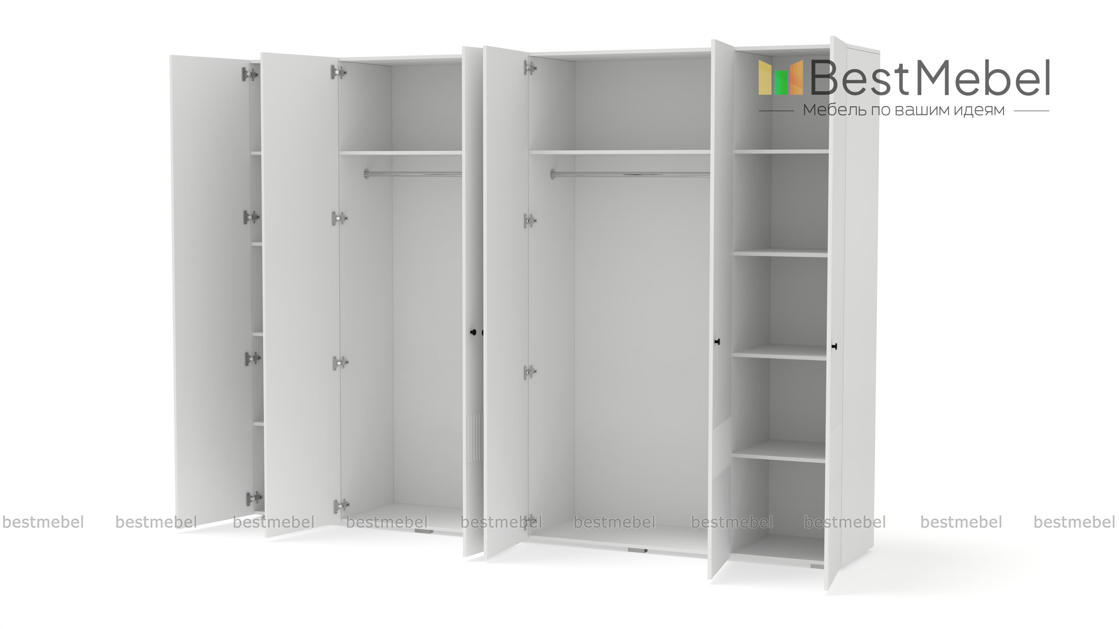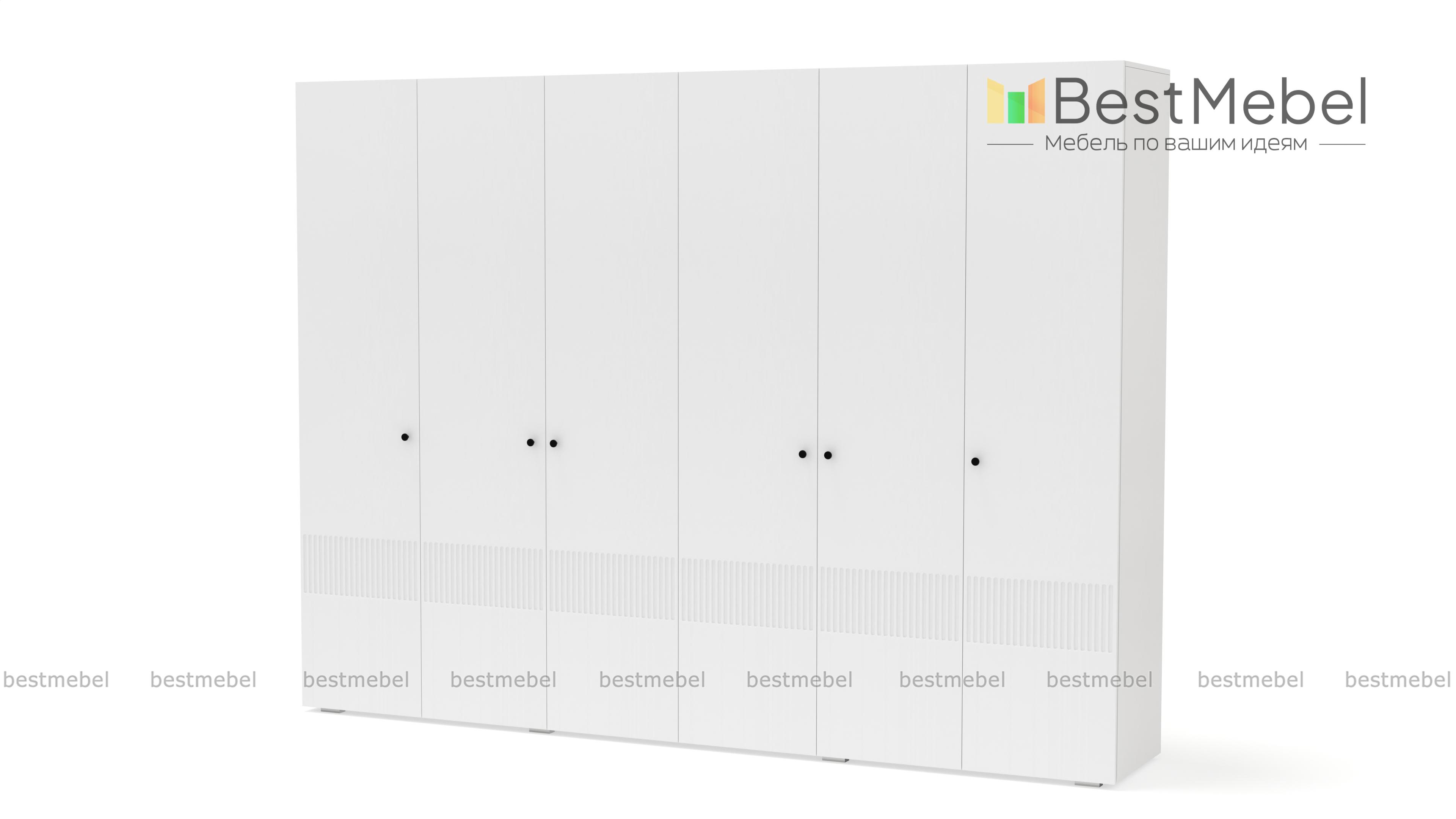 Шкаф распашной Джосс 6 BMS отличается простыми строгими линиями и актуальным декором. Шестидверный шкаф со сплошным цветным фасадом и фрезеровкой прекрасно подходит для спален, прихожих и детских. Два просторных отделения с платяными штангами и верхними полками дополнены однодверными секциями для хранения сложенной одежды и белья. Купить шкаф распашной Джосс 6 BMS вы сможете в нашем интернет-магазине, подобрав размеры, наполнение и подходящую цветовую гамму.