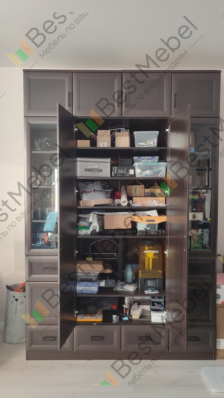 Отличный шкаф. Сделан качественно. Благодаря подобранным размерам получился очень вместительным. Изготовление и доставка заняли всего неделю. Был брак детали одного из ящиков. Лицевая стенка, к которой крепится фасад, имела кромку с нижней, не лицевой стороны (со стороны дня), а верхняя, которую видно при открытии ящика была без кромки. После обращения в поддержку, в течение двух дней привезли новую деталь.