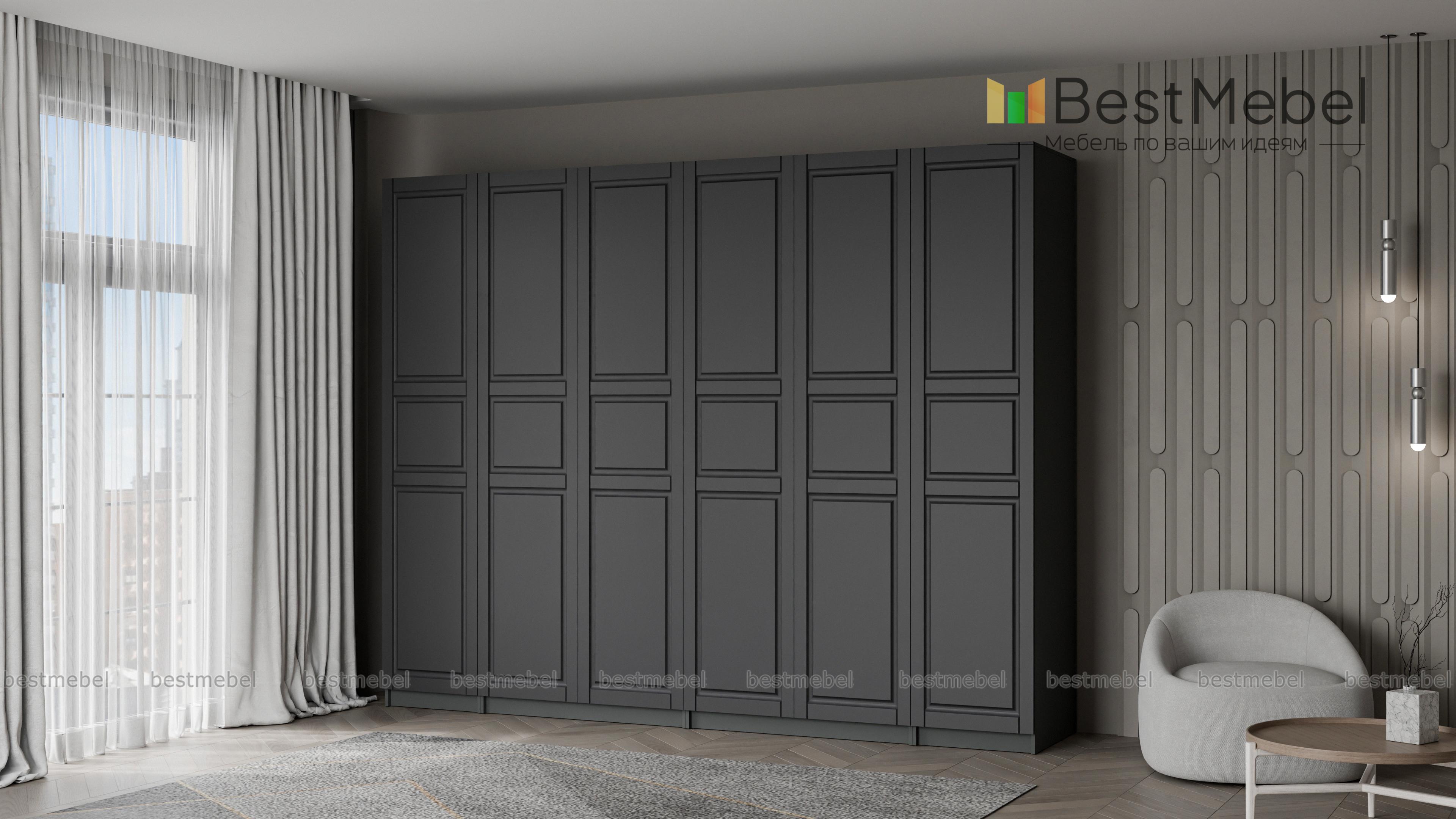 Шкаф распашной Пакс Тисседаль Pax Tyssedal 1, объединивший четыре секции – две двухдверные и две однодверные, вместителен и одновременно эстетичен. Композиция с глухими фасадами, украшенными рамочной фрезеровкой, придаст спальне или прихожей классические черты. В этом многофункциональном гардеробе найдется место для всех ваших вещей, а за счет распашных створок одежда хорошо просматривается. Купить шкаф распашной Пакс Тисседаль Pax Tyssedal 1 вы сможете в нашем интернет-магазине, подобрав цвет по каталогу. Выбирайте мебель в стиле IKEA (ИКЕА) от производителя BestMebelShop!