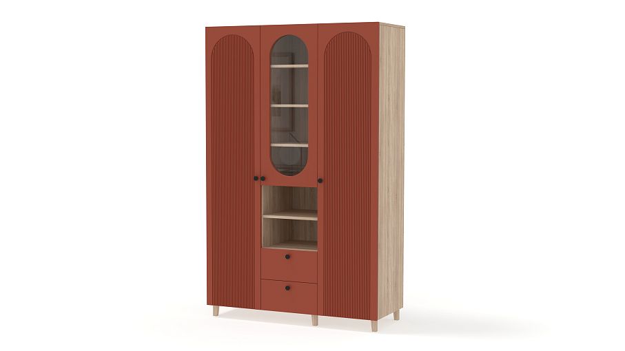 Шкаф распашной Рене 11 BMS с деревянными опорами поможет вам красиво и удобно оформить гостиную, детскую комнату или спальню. Декоративные овальные вырезы смягчают острые углы, а уюта добавит теплая цветовая гамма. Два закрытых распашных отделения разделены комбинированной секцией со стеклянной дверцей, открытыми полками и двумя выдвижными ящиками. Купить шкаф распашной Рене 11 BMS можно на сайте нашего интернет-магазина, подобрав размеры и оттенки из каталога.
