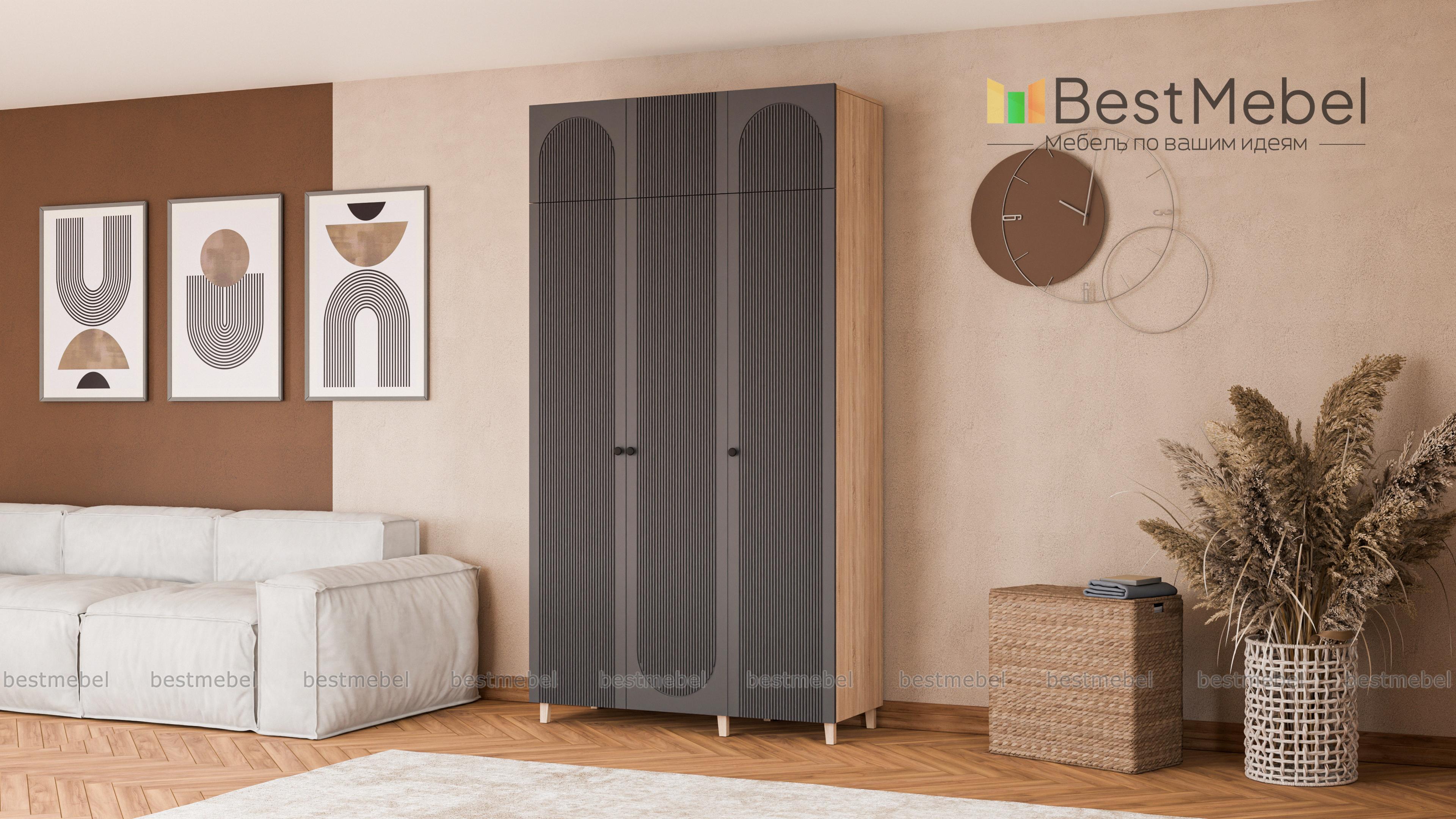 Шкаф распашной Рене 23 BMS поможет разместить еще больше вещей благодаря антресоли. Закрытые тремя дверцами отделения со штангой и полками для белья дополнены распашной секцией сверху. Светлый рифленый фасад шкафа выглядит изящно и современно, а качественные материалы обеспечивают поверхностям эстетичный вид, долговечность и простоту ухода. Купить шкаф распашной Рене 23 BMS можно на сайте нашего интернет-магазина в удобном размере и любых оттенках из каталога.