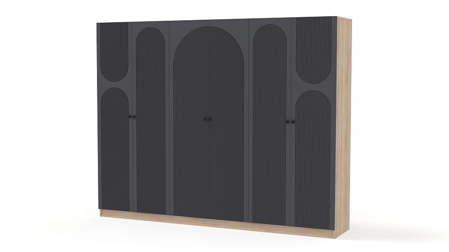 Шкаф распашной Рене 34 BMS отличается вместительностью и выразительным современным дизайном. На темном фасаде эффектно смотрится фрезеровка, корпус из ламинированной ДСП выполнен в древесных тонах. Шестидверная модель укомплектована необходимыми для хранения одежды на вешалках, трикотажа и постельных принадлежностей мебельными штангами и полками. Купить шкаф распашной Рене 34 BMS вы сможете на сайте нашего интернет-магазина в удобном размере и оттенке из каталога.