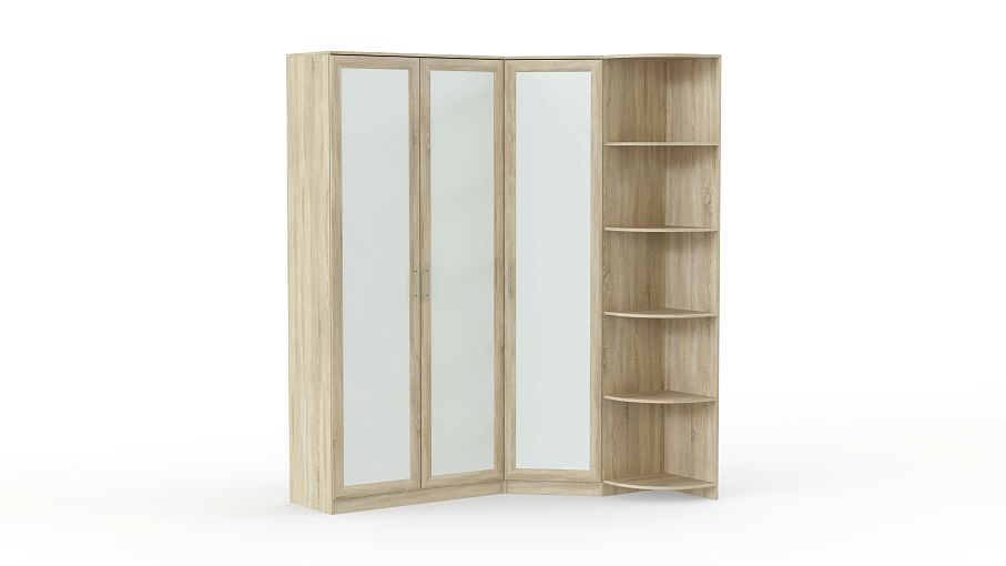 Угловой шкаф Токио 7 BMS вместителен, но при этом компактен благодаря Г-образной форме. По-восточному лаконичная модель с геометричным декором фасада выполнена в контрастных древесных и белых тонах. Удобная система хранения включает в себя распашные отделения с бельевыми полками и штангами и торцевой радиусный стеллаж, на полках которого разместятся предметы декора и важные мелочи. Купить угловой шкаф Токио 7 BMS для меблировки спальни или прихожей вы сможете в нашем интернет-магазине.