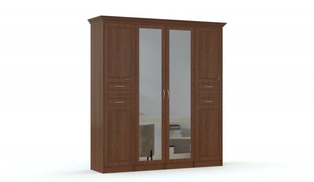 Спальня Рита 7 BMS – роскошный модульный гарнитур для поклонников классического дизайна. Выполненная в благородных древесных тонах, композиция с фрезерованными фасадами смотрится элегантно и респектабельно. В комплект входят кровать с мягкой накладкой в изголовье, прикроватные тумбы для хранения мелочей, вместительный комод с четырьмя выдвижными ящиками, дополненный навесным зеркалом, и комбинированный шкаф для белья и одежды с зеркальными центральными дверцами. Купить спальню Рита 7 BMS вы сможете в нашем интернет-магазине по лучшей цене.