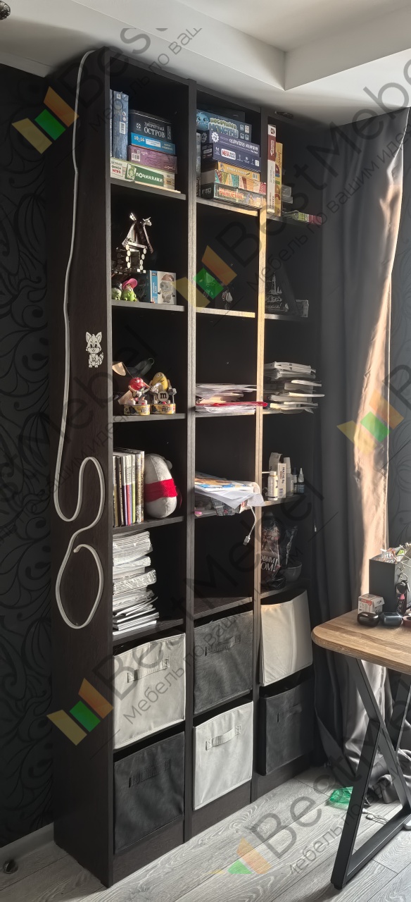 Заказ 00000284750. Заказывали стеллаж в ноябре 2025, после консультации с менеджером компании изменили размер и глубину (нужны были ячейки определённой глубины), так же предлагают сделать вырез под плинтус (нам было не нужно ). Стеллаж изготовили примерно за 2 недели. Доставка быстрая. Предлагают услугу по сборке, мы собирали сами. Стеллаж высокий и узкий, необходимо крепление к стене, крепёж в комплекте, отверстия есть.