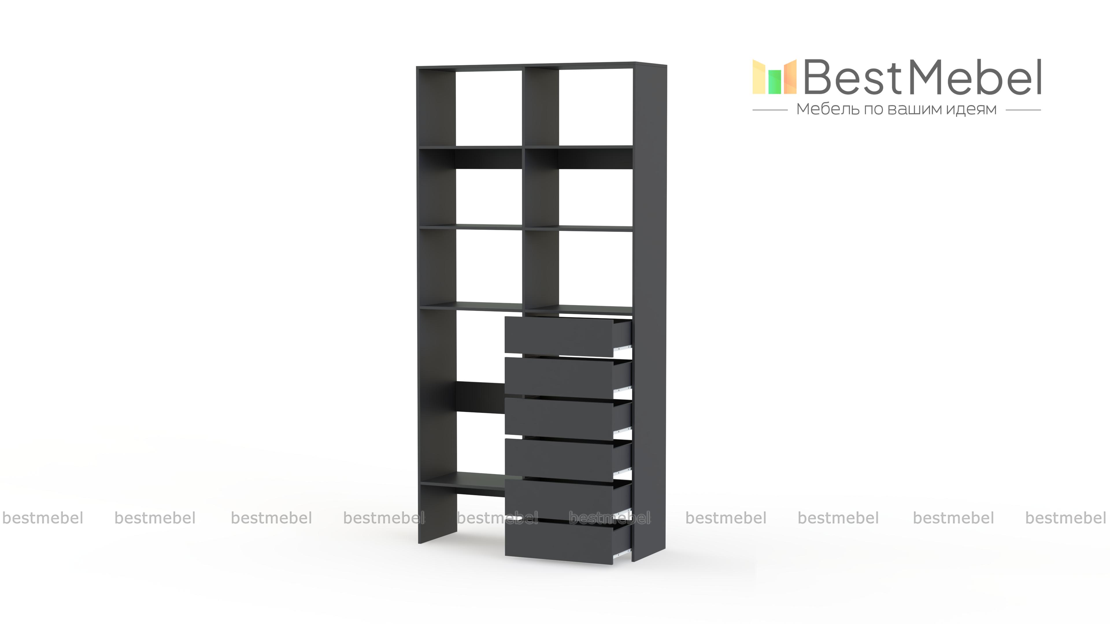 Стеллаж для одежды Мирта 39 BMS представляет собой готовое решение для вашей прихожей или гардеробной комнаты. Расположенные на разной высоте полки и целых шесть выдвижных ящиков позволят вам разместить как мелкие, так и габаритные вещи: одежду, обувные коробки и всевозможные аксессуары. Для изготовления стеллажа использован современный экологичный материал — ламинированная ДСП. Купить стеллаж для одежды Мирта 39 BMS в оттенках нашего каталога на выбор вы сможете на сайте интернет-магазина.