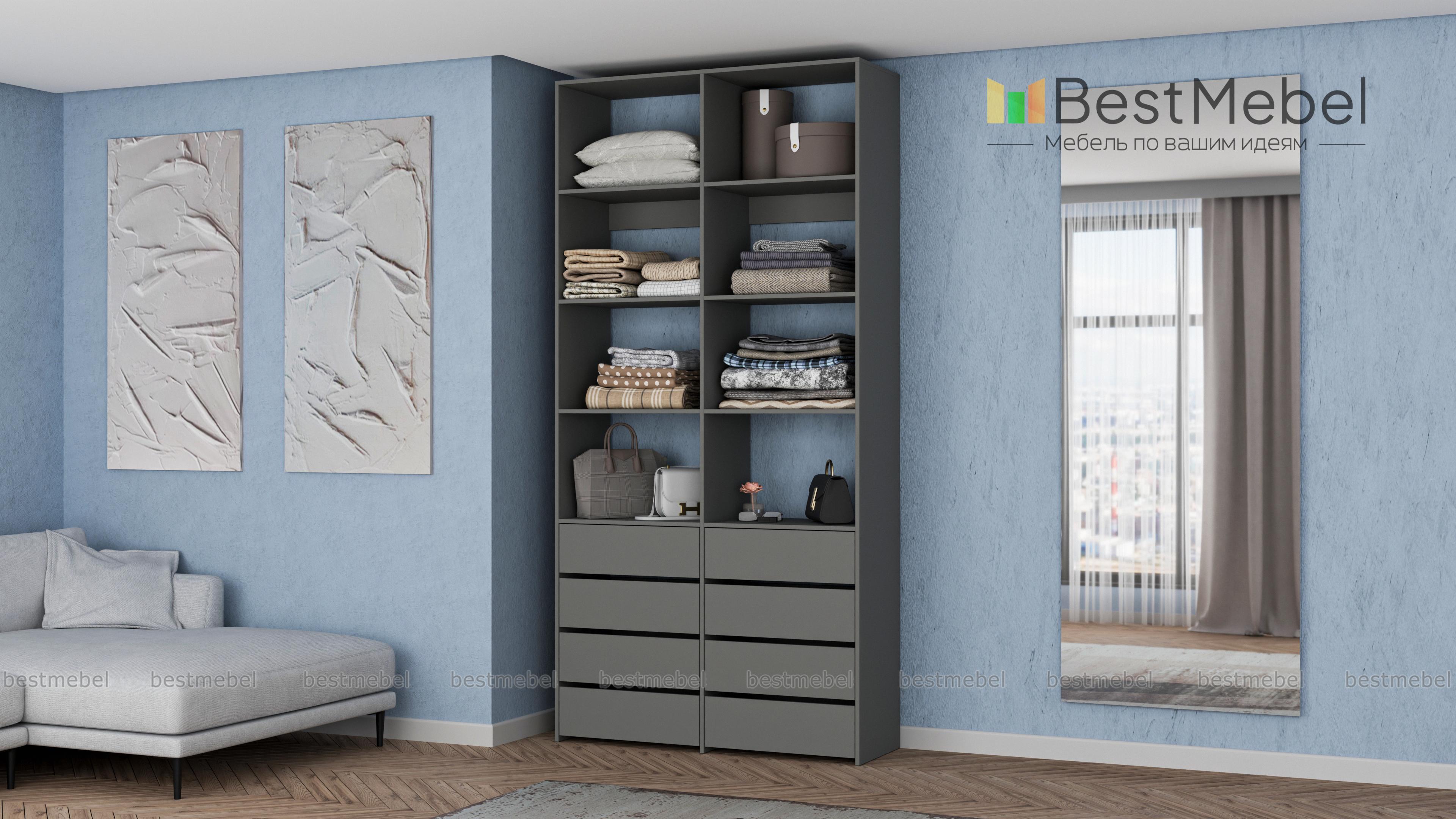 Стеллаж для одежды Мирта 40 BMS поможет вам грамотно спланировать пространство для хранения. Двухсекционная модель оборудована как открытыми полками, так и выдвижными ящиками, обеспечивая удобный доступ к разным предметам гардероба. Поверхности из ламинированной плиты отличаются износостойкостью и легко очищаются от загрязнений. Купить стеллаж для одежды Мирта 40 BMS с выбором наиболее подходящего оттенка и размеров приглашаем к нам в интернет-магазин.