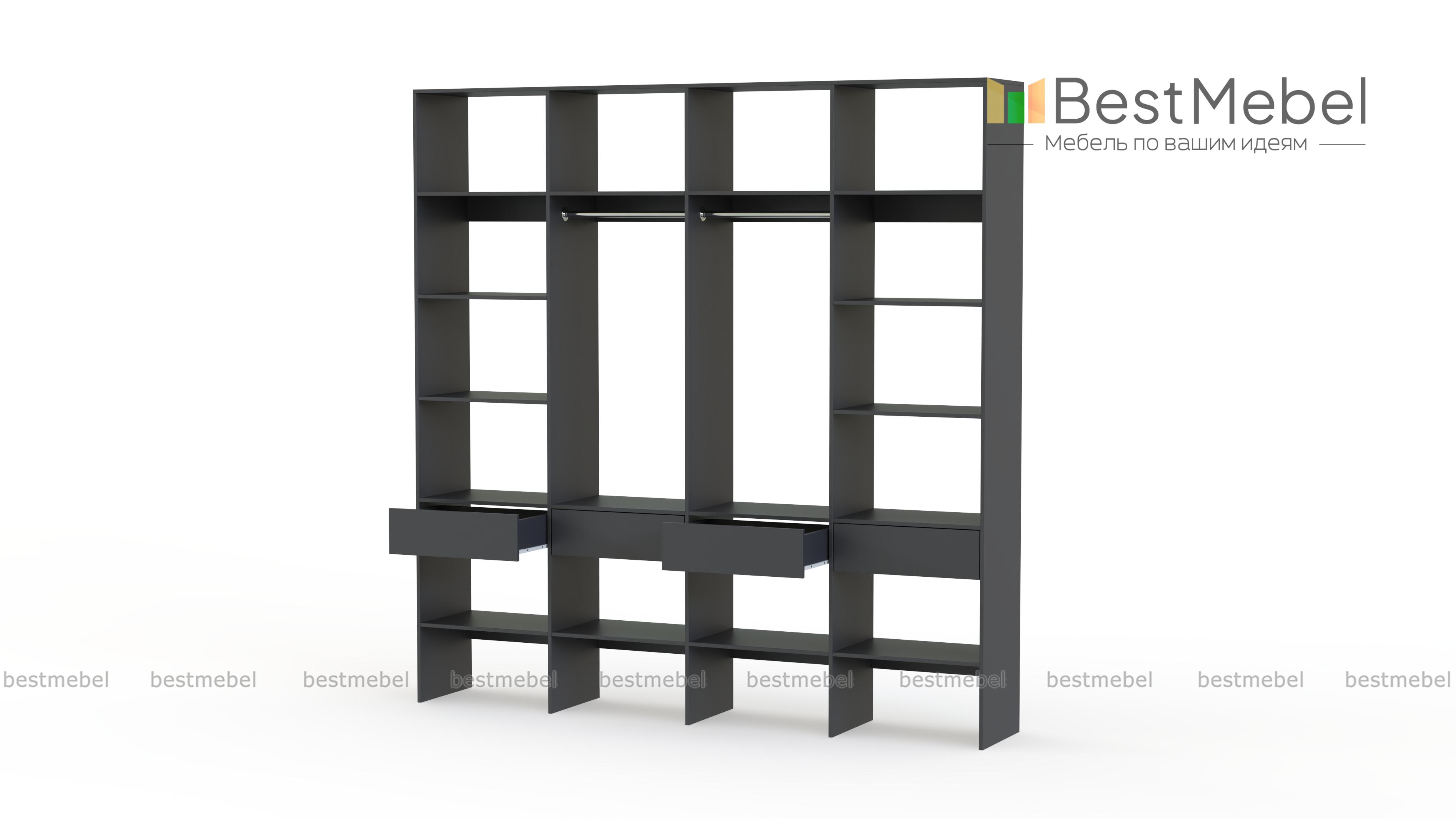 Стеллаж для одежды Мирта 60 BMS поможет вам с организацией хранения гардероба и бытовых вещей. Одежда, текстиль для дома, сезонные аксессуары и обувь будут всегда на виду и под рукой благодаря продуманной конструкции. Четырехсекционная модель оборудована двумя штангами в центре, расположенными по периметру полками и рядом из четырех выдвижных ящиков. Купить стеллаж для одежды Мирта 60 BMS в оттенках нашего каталога и любом удобном размере вы сможете на сайте интернет-магазина.