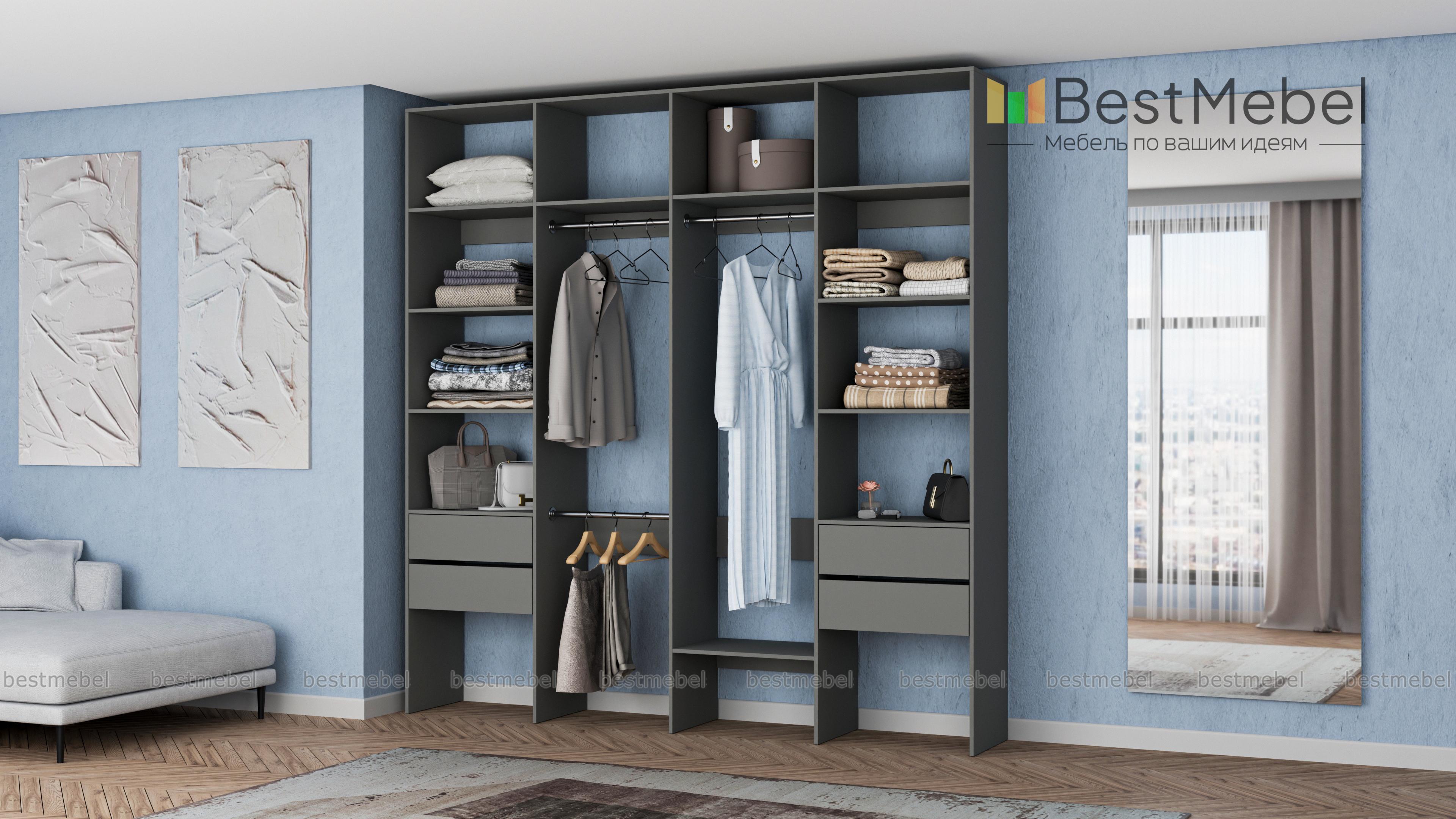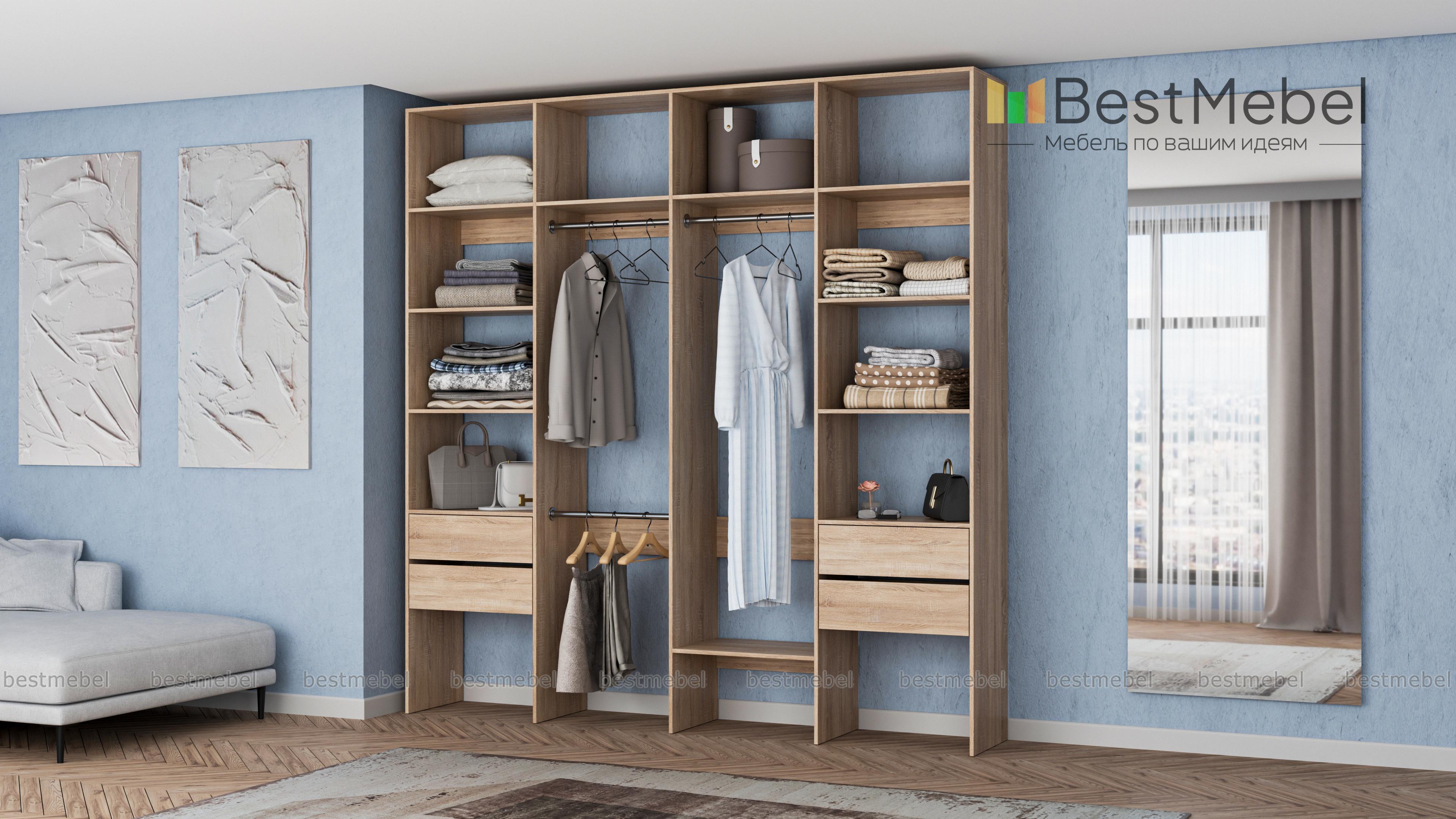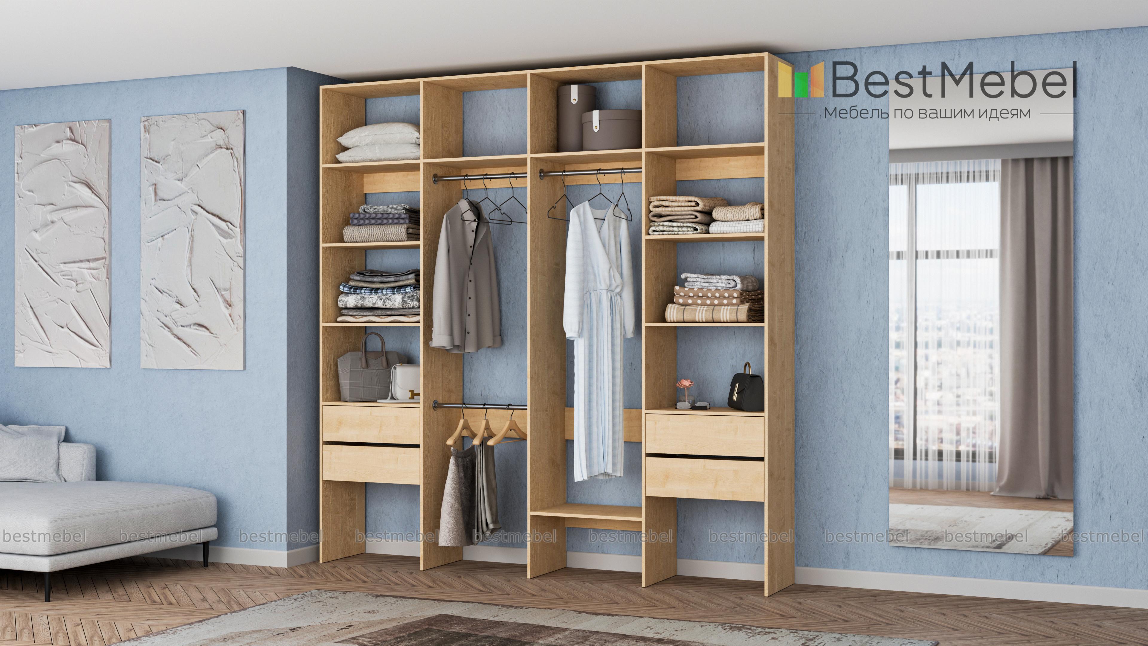 Стеллаж для одежды Мирта 66 BMS поможет вам разгрузить пространство квартиры от громоздких шкафов. Комплектация включает в себя разноуровневые штанги для одежды, вместительные полки и четыре выдвижных ящика, позволяющих хранить в порядке мелкие вещи. Благодаря использованию ламинированной плиты стеллаж доступен по цене, отличается прочностью и имеет широкую цветовую палитру. Купить стеллаж для одежды Мирта 66 BMS с изготовлением по индивидуальным размерам приглашаем в наш интернет-магазин.