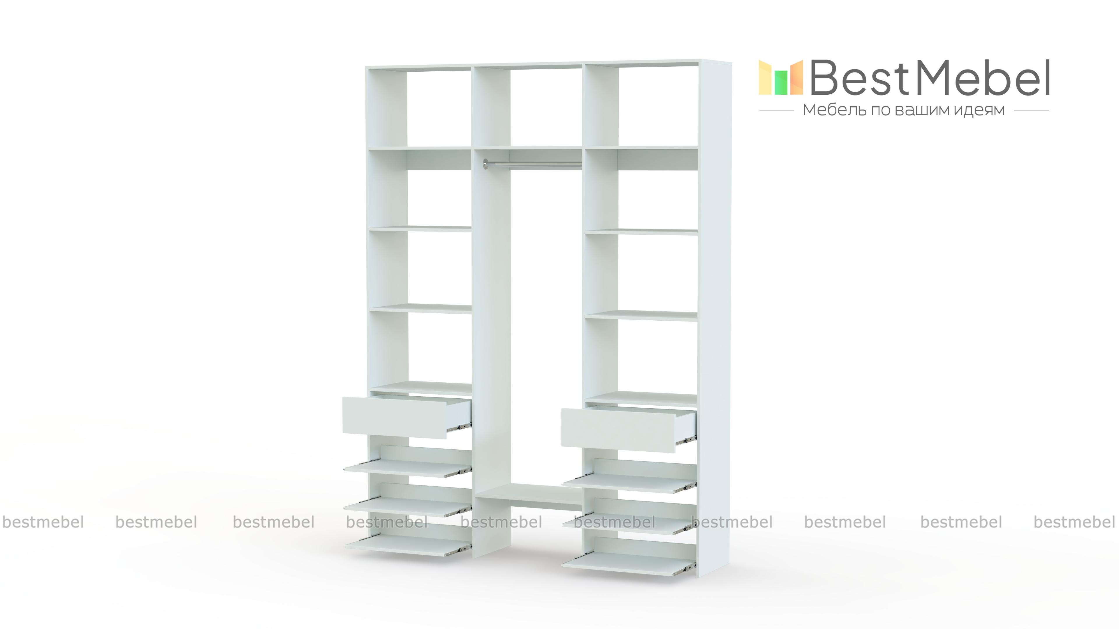 Стеллаж для одежды Мирта 93 BMS поможет вам разместить повседневные и редко используемые вещи. Удобная конфигурация включает в себя расположенные на разной высоте полки и секцию для вешалок, два ящика под мелкие предметы и выдвижные панели справа и слева. Благодаря изготовлению из ламинированной плиты стеллаж надежный, доступный по цене и обладает широким выбором актуальных оттенков. Купить стеллаж для одежды Мирта 93 BMS в оптимальном размере приглашаем к нам в интернет-магазин.