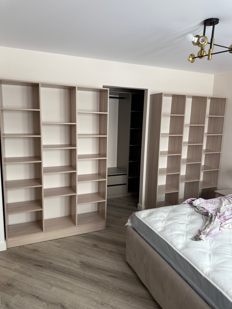 Есть возможность выбрать нужный размер. Очень хорошо вписался в комнату, теперь есть две зоны — для отдыха и сна, в сборке все элементарно — даже не нужна инструкция.Недостатки:Не нашлиКомментарий:Заказ 00000915584, изделие ЭСКИЗ № 00000915584 Стеллаж Эльбрус-3 BMS (1068х1950х220).