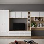 Гостиная Тиса-229 BMS – многофункциональный комплект в современном стиле, который поможет организовать не только зону отдыха, но и рабочее место. Универсальная расцветка, сочетающая древесные тона корпуса и белые фасады, украсит любой тип интерьера. В комплект входят двухдверный шкаф для одежды, тумба под ТВ с выдвижными ящиками, навесные шкафчики, открытые полки и закрепленная на навесной панели столешница, подходящая для письма или работы за ноутбуком. Купить стенку Тиса-229 BMS по лучшей цене вы сможете в нашем интернет-магазине.
