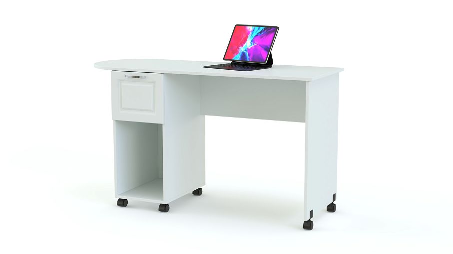 Стол Ульяна МДФ BMS может дополнить модульный комплект или самостоятельно использоваться в интерьере детской. Практичный приставной столик оборудован для простоты перемещения колесными опорами и легко займет наиболее удобное место в комнате. Под безопасно скругленной столешницей располагается тумба с выдвижным ящичком для мелочей и нишей под системный блок. Купить стол Ульяна МДФ BMS для учебы или творческих занятий приглашаем недорого в наш интернет-магазин.