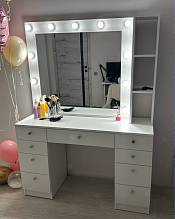 Туалетный столик Лацио 4 BMS дополнен продуманной системой хранения и позволит разместить под рукой все необходимые уходовые средства и аксессуары. Двухтумбовая модель с просторной столешницей и выдвижным ящиком в центральной части оборудована панно с зеркалом и боковыми открытыми полками. Особенно комфортным нанесение макияжа сделает встроенная по периметру зеркала подсветка. Купить туалетный столик Лацио 4 BMS и дополнить современный интерьер практичным предметом вам поможет наш интернет-магазин.