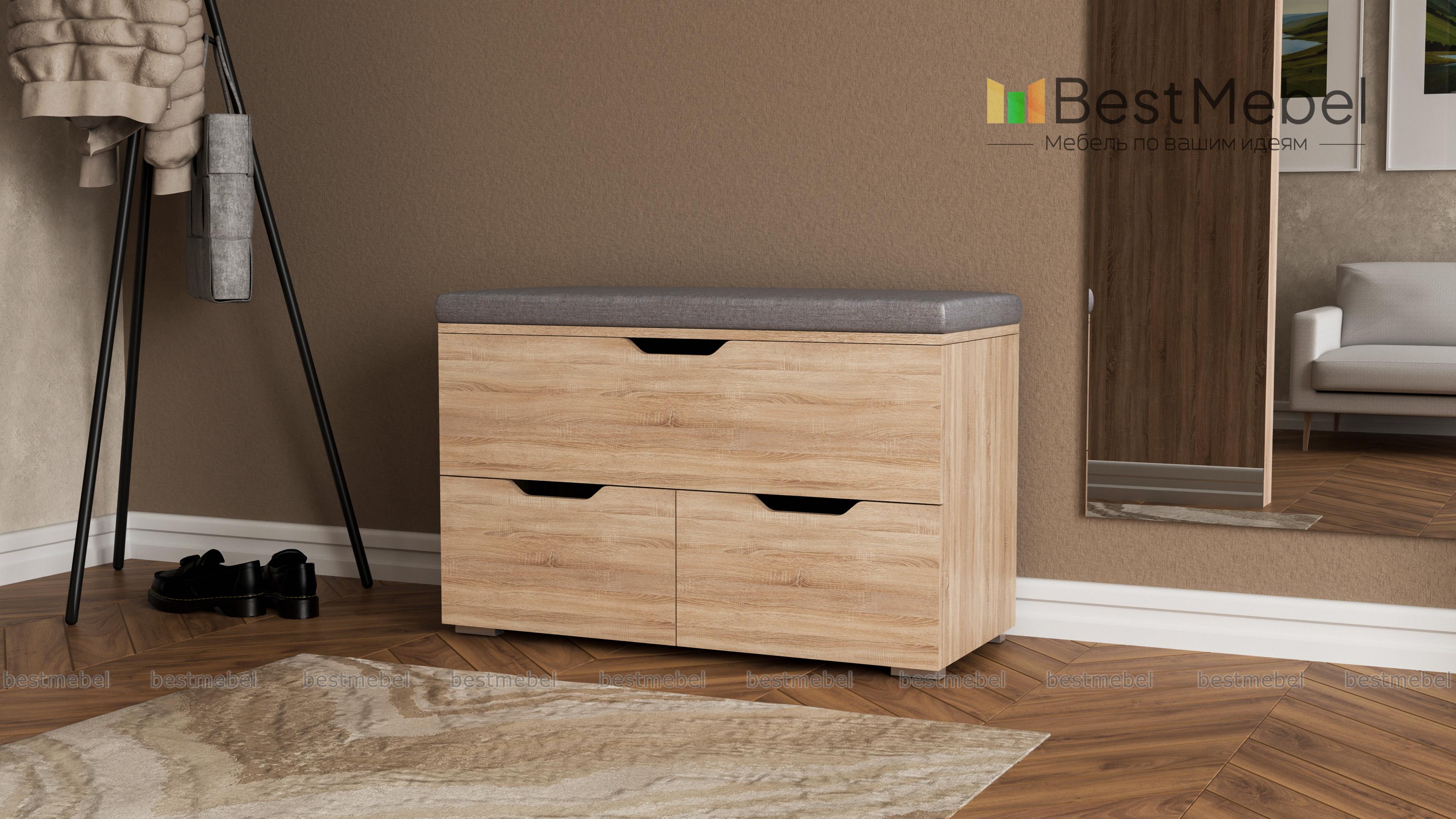 Для моей прихожей, довольно узкой, такая банкетка- то, что нужно. Ящики вместительные, открываются легко, бесшумно, использую их для хранения запасный тапок и средств для ухода за обувью. Верхнее отделение можно использовать для хранения любых вещей- места много, ничего не помнется и не потеряется. Конструкция простая, но выглядит банкетка стильно и впишется в любой современный интерьер. Качество материалов высокое.