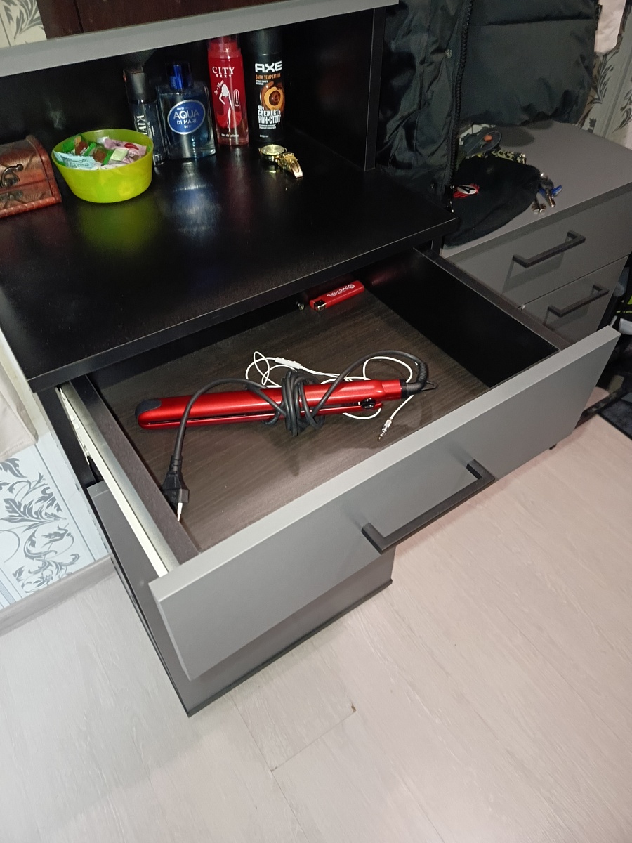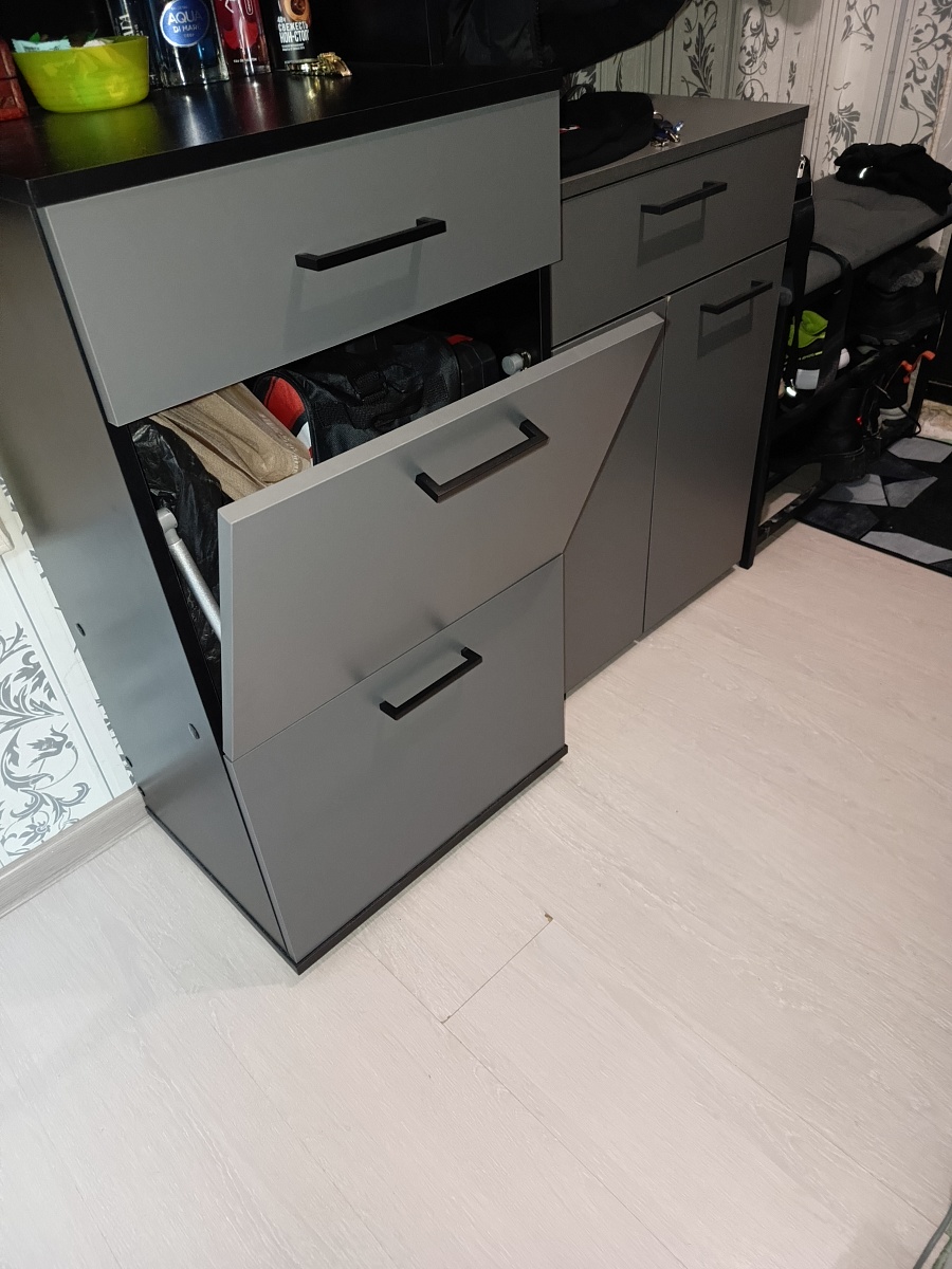 Отличная тумба. Собирается легко. Брала для хранения ниток. На верхний ящик пришлось установить магнит, так как кот очень легко его открывает и спит в нем))). Мой косяк в том, что нужно было глубину делать больше. Не все нитки влезли)))