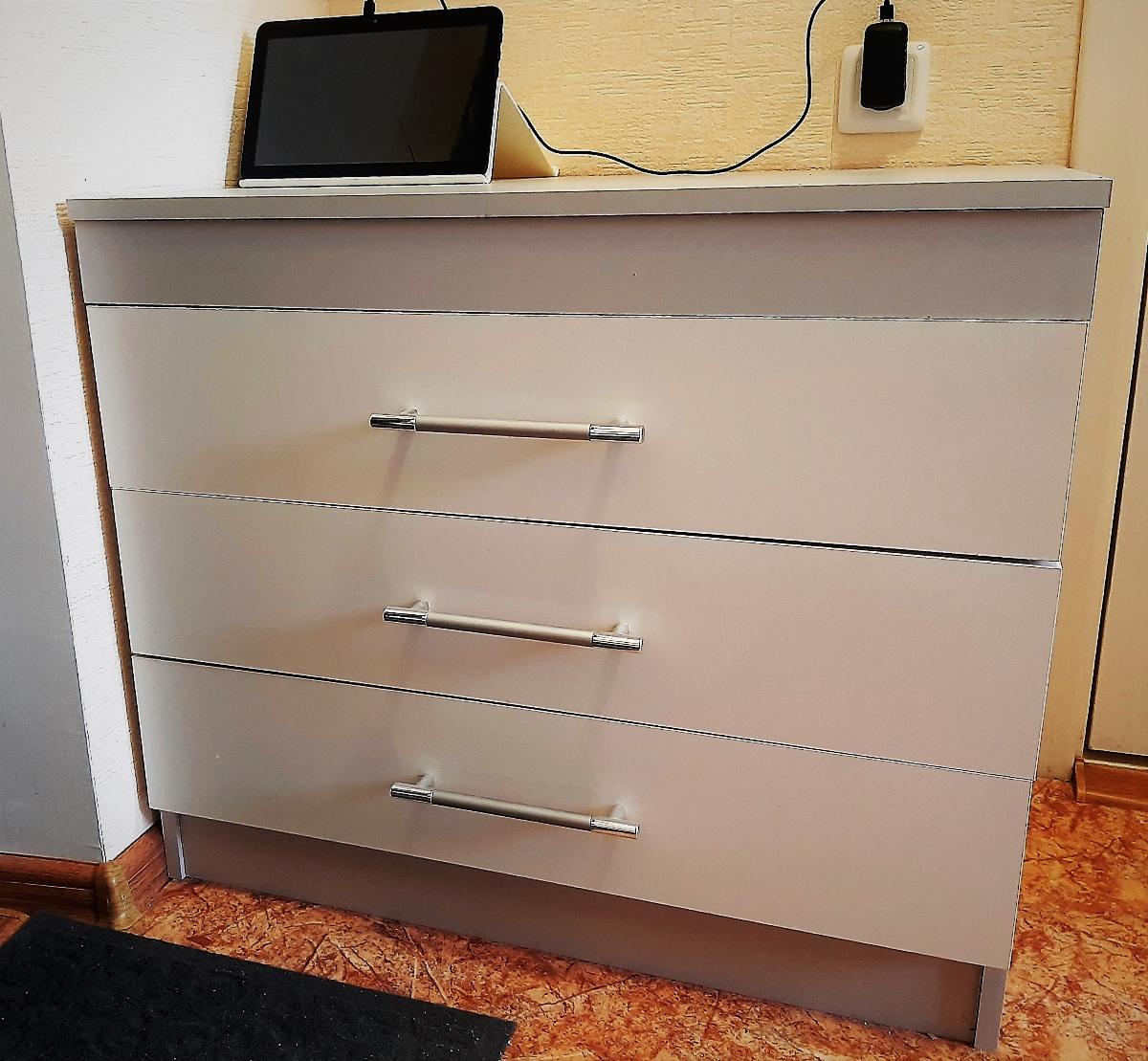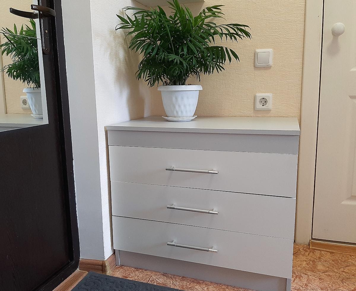 В ПРИХОЖУЮ НУЖЕН БЫЛ КОМОД, ВПИСЫВАЮЩИЙСЯ МЕЖДУ ДВУМЯ ДВЕРЬМИ И РОЗЕТКОЙ. ПОЛУЧЕННОЕ ИЗДЕЛИЕ УСТРОИЛО ПО ВСЕМ ПАРАМЕТРАМ. СБОРКА ТРУДНОСТЕЙ НЕ ВЫЗВАЛА.     ЯВЛЯЕТСЯ ОДНОВРЕМЕННО ТУМБОЧКОЙ И БАНКЕТКОЙ. ДЛИННЫЕ ЯЩИКИ (75 СМ)  ИДЕАЛЬНЫ ДЛЯ ХРАНЕНИЯ ВСЕВОЗМОЖНЫХ  ПРИНАДЛЕЖНОСТЕЙ, РУЛОНОВ, ИНСТРУМЕНТОВ БОЛЬШИХ РАЗМЕРОВ. ДИЗАЙН ТОЖЕ УСТРАИВАЕТ. ПОЛЁТ НОРМАЛЬНЫЙ. НЕДОСТАТКОВ НЕ ВЫЯВЛЕНО.