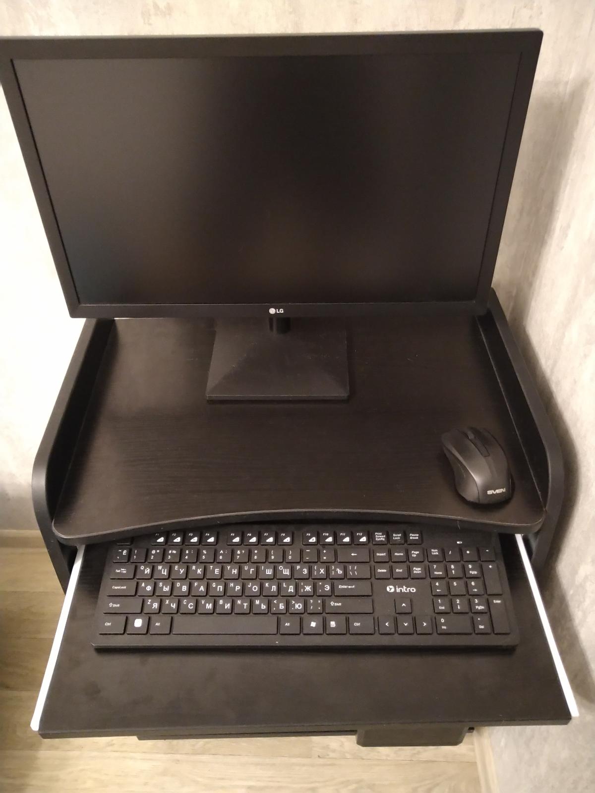 Долго не мог найти в интернете компактный передвижной компьютерный столик для работы на диване. Этот вариант оказался тем,что нужно. Заказал в черном цвете с отделкой кромок.(Ширина: 560 Высота: 700Глубина: 380).Для работы сидя на диване эти размеры  самое то.  К качеству притензий нет.  Рекомендую.