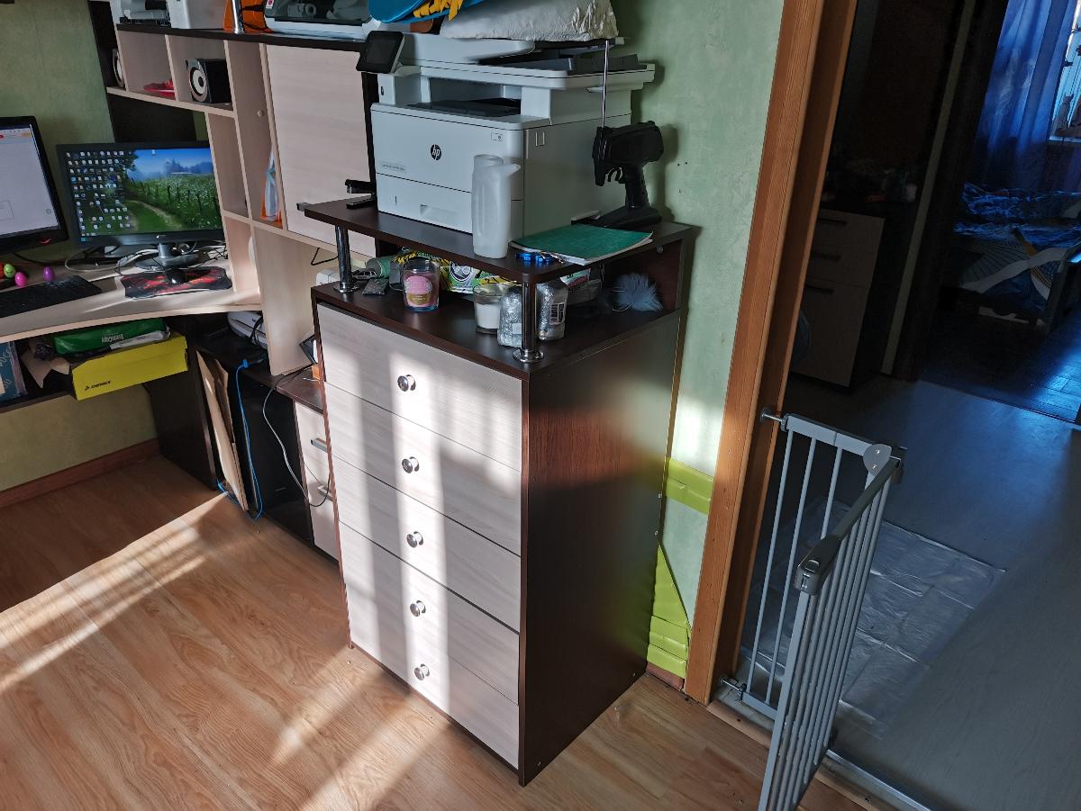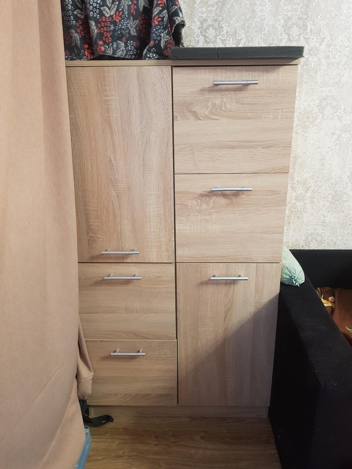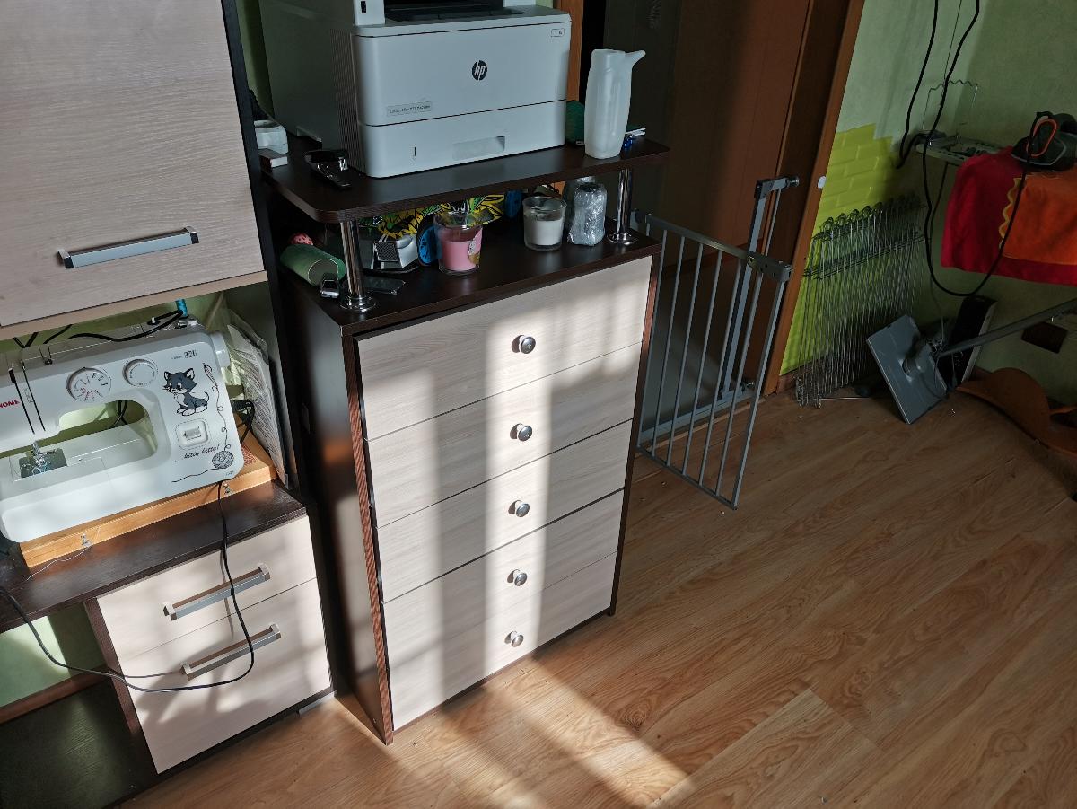 Использовали данный комод, как дополнительную часть к компьютерному столу. А именно, для установки принтера. Очень удобно. Давно искали такой предмет мебели, не слишком низкий, чтоб непременно был и с ящиками и с открытой полочкой. Сборка простая. Ящики удобные. И ручки круглые, искали именно с такими. Курьер привез все вовремя, как и просили, после рабочего дня.