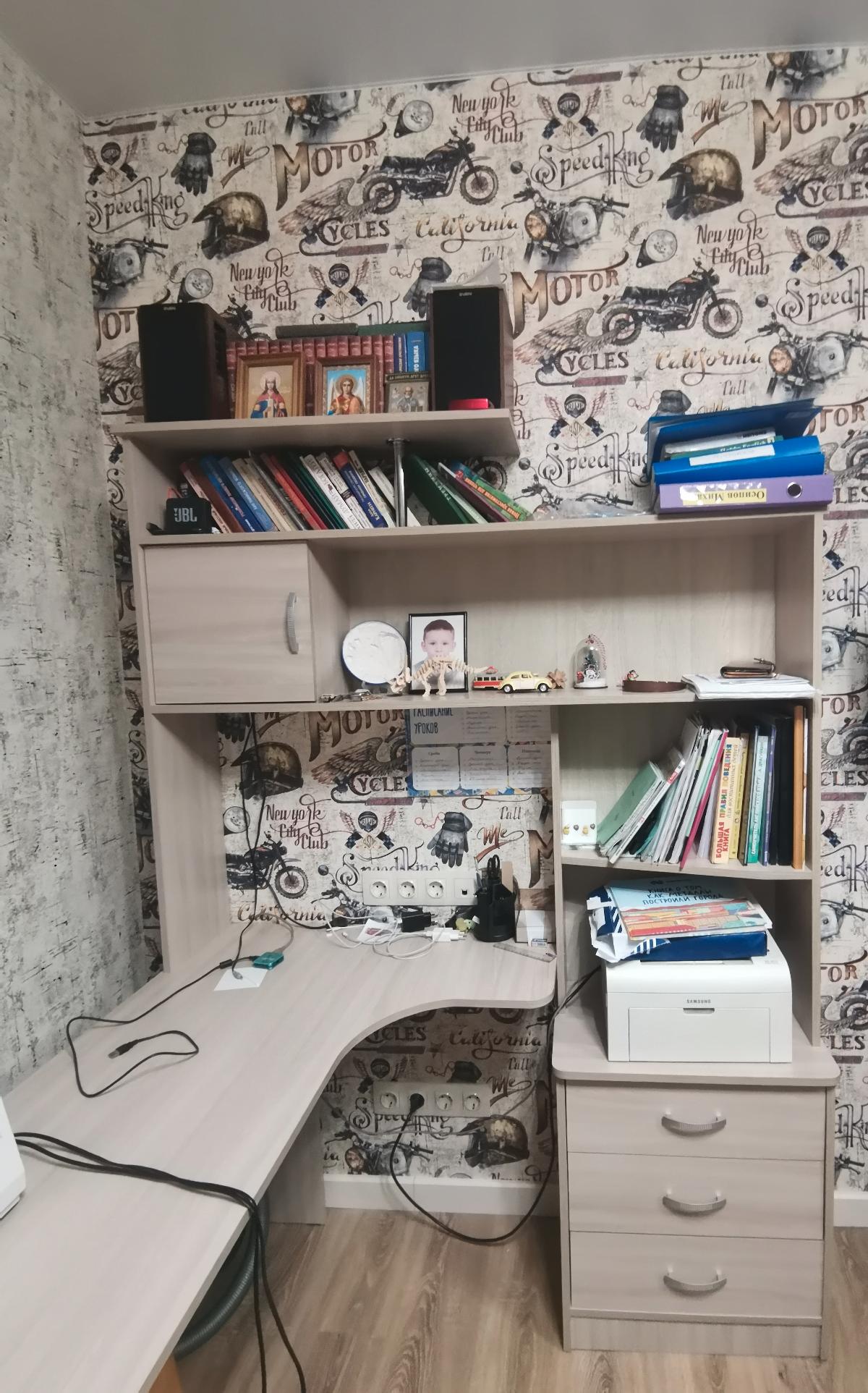 Заказали сыну компьютерный стол Прометей,цвет Дуб молочный. Изготовили быстро, доставили в удобное для нас время. Мы довольны нереально. Стол огонь!!!!!Помещается все!!!!и книги(вся коллекция) и ноутбук, и фотки и игрушки. И принтер поместился!!!Советуем однозначно к покупке!!!не пожалеете!!!!!!Качество шикарное!!!!Спасибо!!!