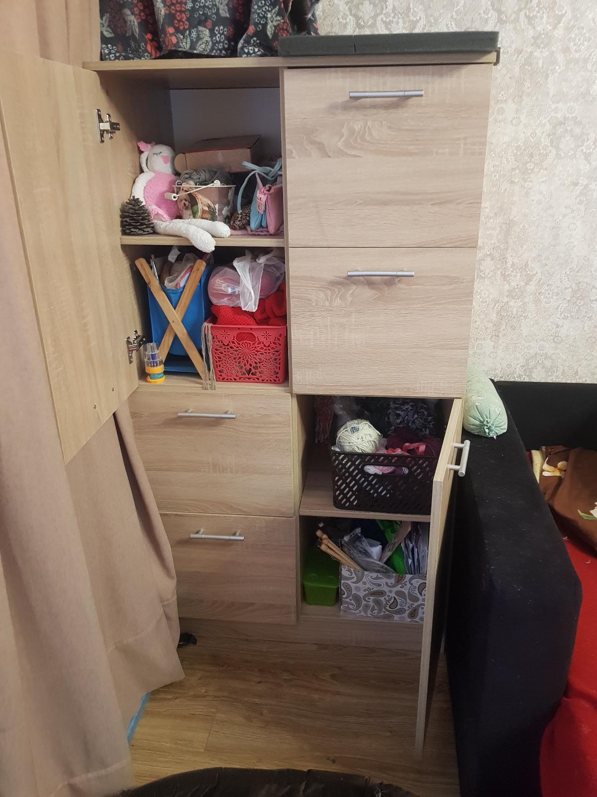 Заказывала этот комод для рукоделия по своим размерам,все влезло и еще и место осталось! Очень удобный!И даже коту все понравилось и он теперь спит на этом комоде))))
