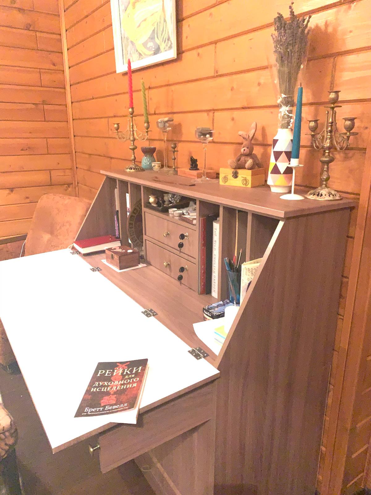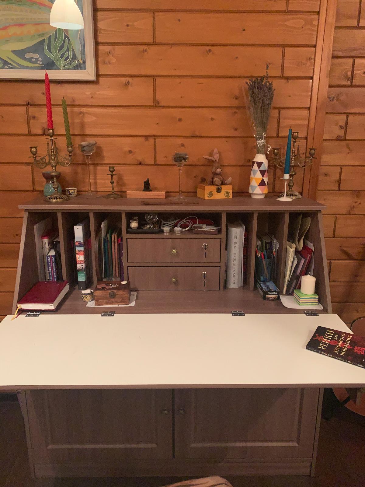 Благодарю за исполнение моей мечты!! Я давно искала себе стол для работы дома, чтоб все было под рукой и аккуратно. И я нашла))) спасибо за быстрое изготовление и доставку по моим размерам!! Думаю буду заказывать мебель ещё. Заказ 00000492411, изделие ЭСКИЗ Комод-секретер Ник-3 BMS (1300х1200х500)