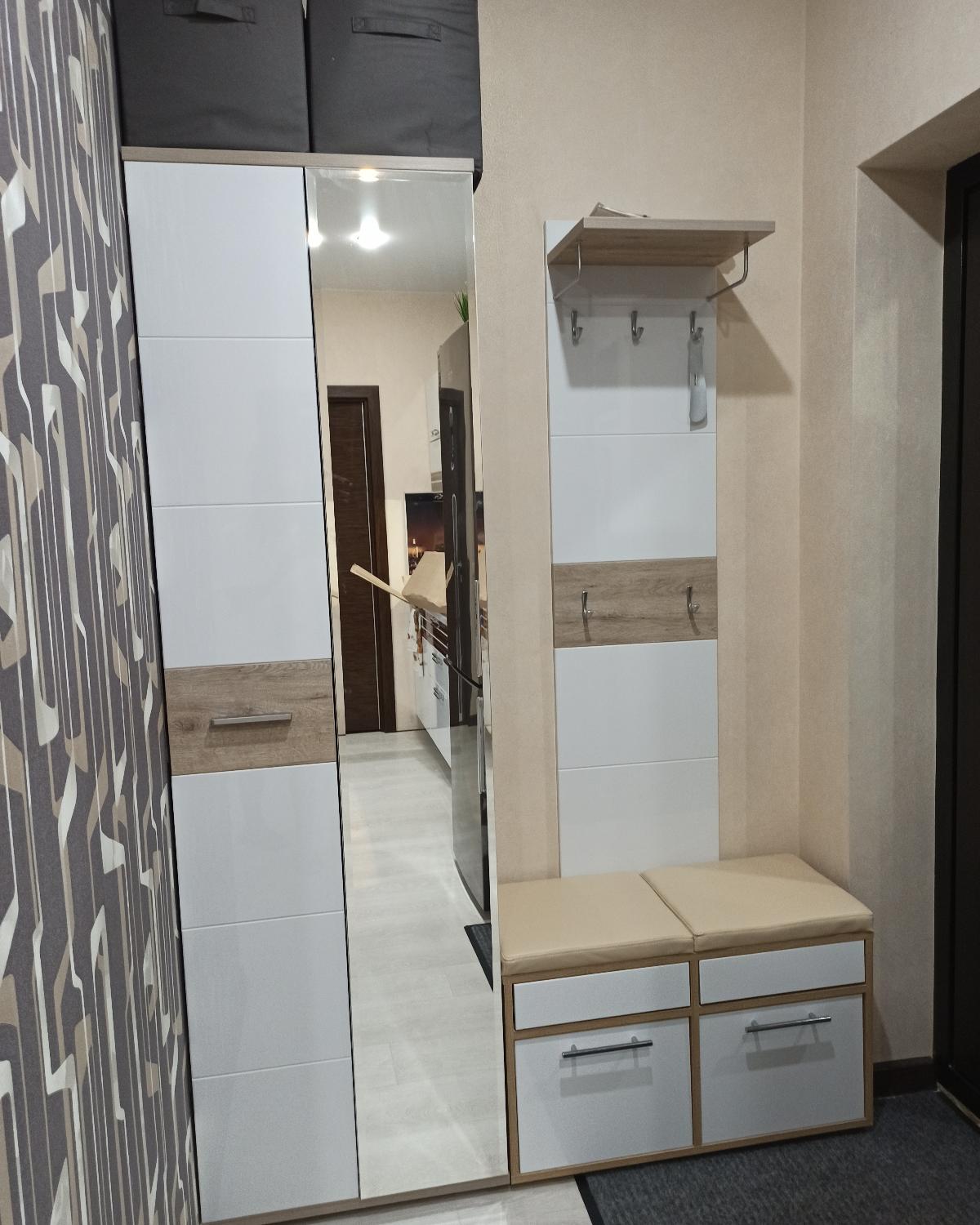 Заказала стенку Макарена BMS (заказ 00000338609 от 10.01.2020) в январе 2020 г. и вот решилась написать свой отзыв. На самом деле стенка современная, практичная и самая дешёвая из того что я смогла перерыть в интернете. Очень удобно что на сайте BestMebelShop я заказала эту стенку с удобной для моей квартиры высотой 2300 и глубиной 50 см. У нас в квартире посередине стены спрятана труба с отоплением (батарея), которая выходит наружу сверху из потолка и снизу из пола. Поэтому пришлось искать такую модель стенки, где можно сделать вырез на задней планке внизу, так чтобы спрятать трубу, ну и высоту стенки подобрали так чтобы ни с какого ракурса трубы из потолка не было видно.Выбрала классическую черно-белую расцветку стенки, на мой взгляд стильно и современно. Есть два шкафа, они выглядят достаточно компактно, но очень вместительные, один с полками, другой со штангой и двуми полками сверху и снизу. Над телевизором полки со стеклянными дверками. По бокам есть открытые полки и полки с дверками. Внизу под телевизором два больших выдвижных отделения, а по бокам две дверки с полками. В целом в неё убирается очень много вещей, да и выглядит очень красиво. Муж собирал сам, пришлось конечно попыхтеть, но оно того стоило.Рядом со стенкой поставили шкаф Комфорт 6 BMS с этого же сайта, с такой же расцветкой и фурнитурой. По моему получилось очень даже не плохо. На BestMebelShop заказываю не впервые, поскольку очень довольна ценой и качеством. Один минус всё же есть - на всех деталях мебели на лицевой стороне приклеены заводские наклейки, они очень тяжело снимаются. Проблему решила с помощью фена и жидкости для снятия лака. Мне моя стенка очень нравится, нисколько не пожалела о покупке. Если вам Макарена BMS приглянулась берите и не думайте, не пожалеете!